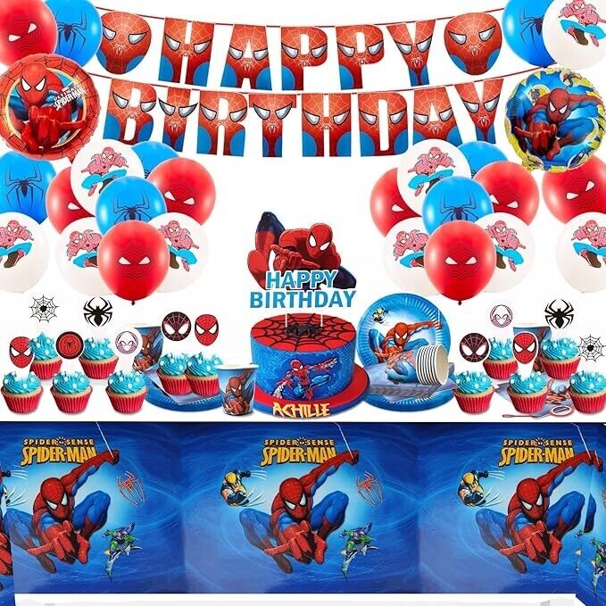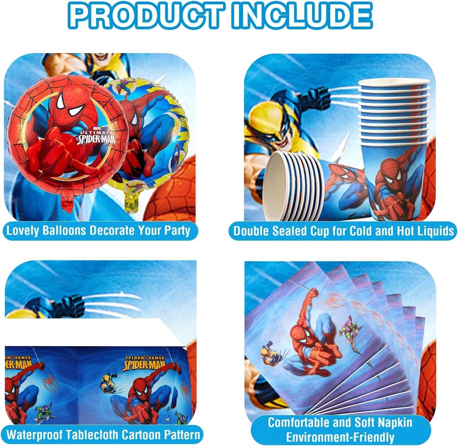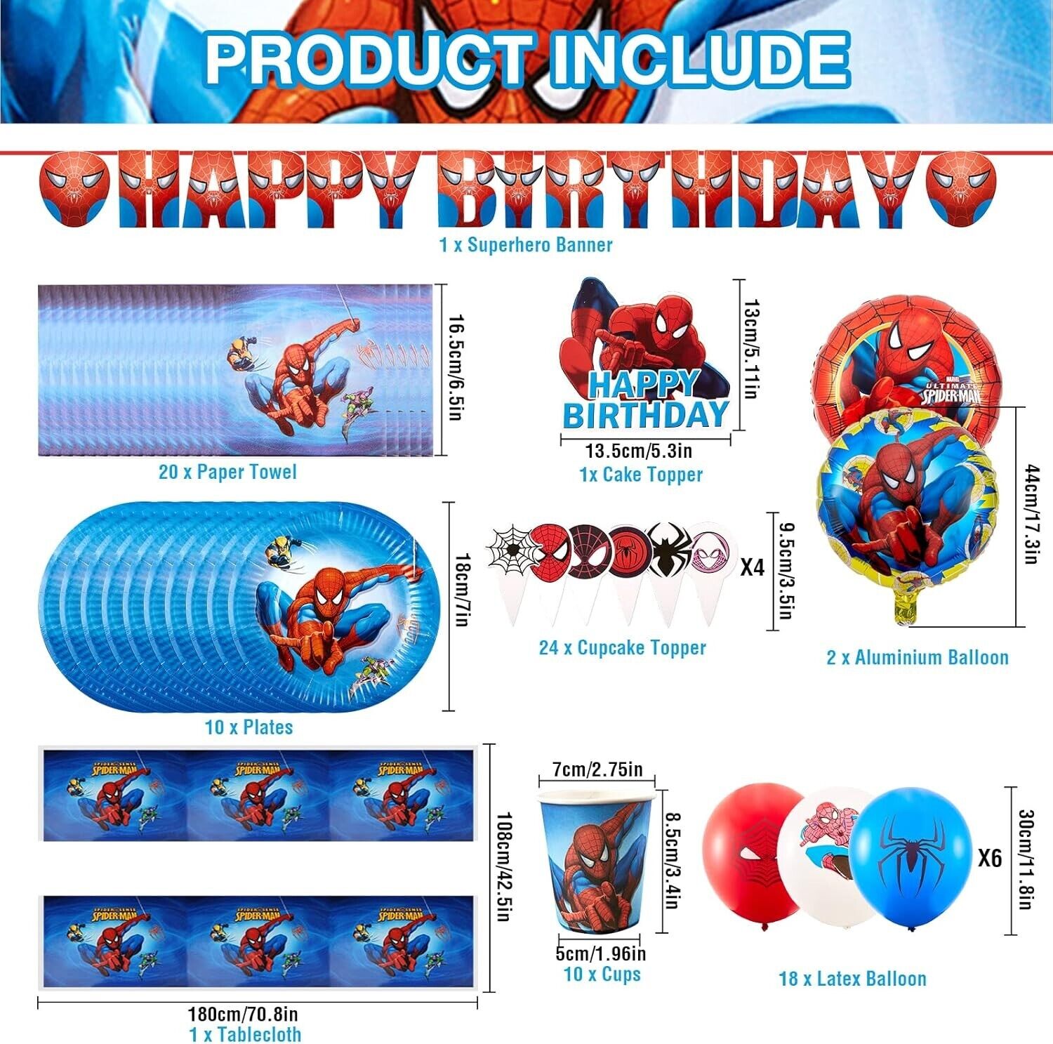 Spiderman - Partygeschirr Set mit Superhelden Deko, Tortendeko Party Dekorat