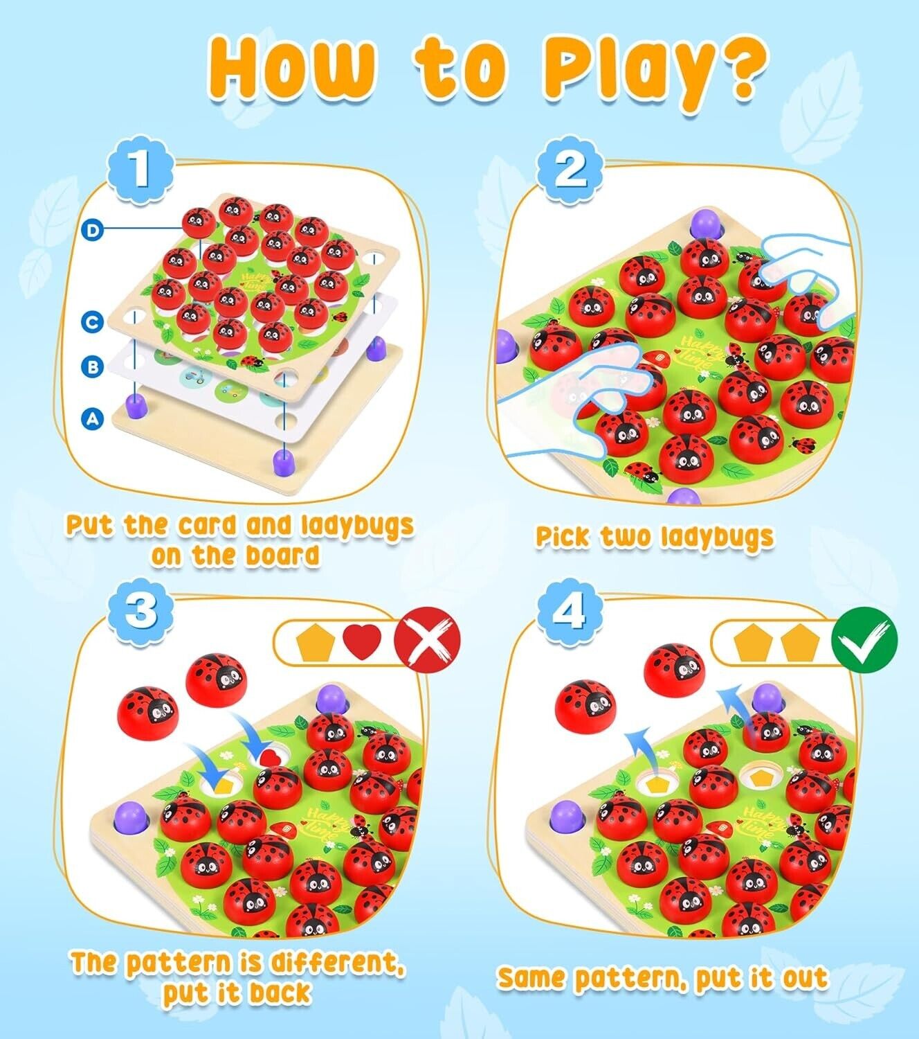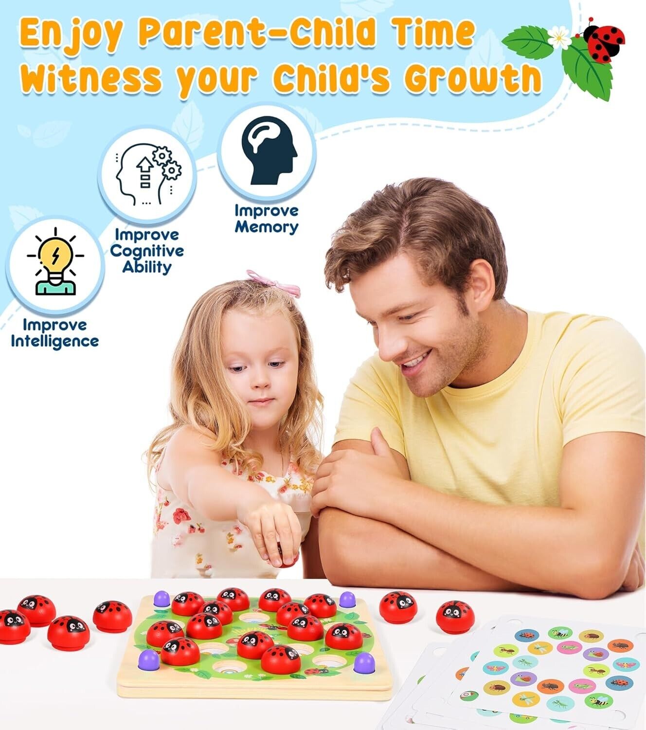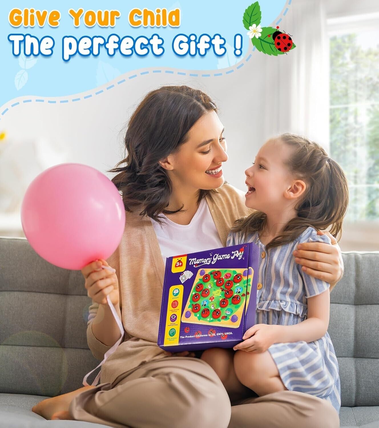- 【Kognitive Fähigkeiten Fördern】 Unser Marienkäfer-Memory-Spielzeug ist ein sehr geeignetes memory Spiel für Kinder ab 3 Jahren. Mit diesem Spiel können Kinder ihre Konzentration und ihr Gedächtnis verbessern, die Hand-Auge-Koordination entwickeln und die Farberkennung verbessern. Die Spielregeln sind einfach: Kinder müssen sich die Positionen verschiedener Muster merken und die Zuordnung abschließen, indem sie zwei identische Marienkäfer auswählen.