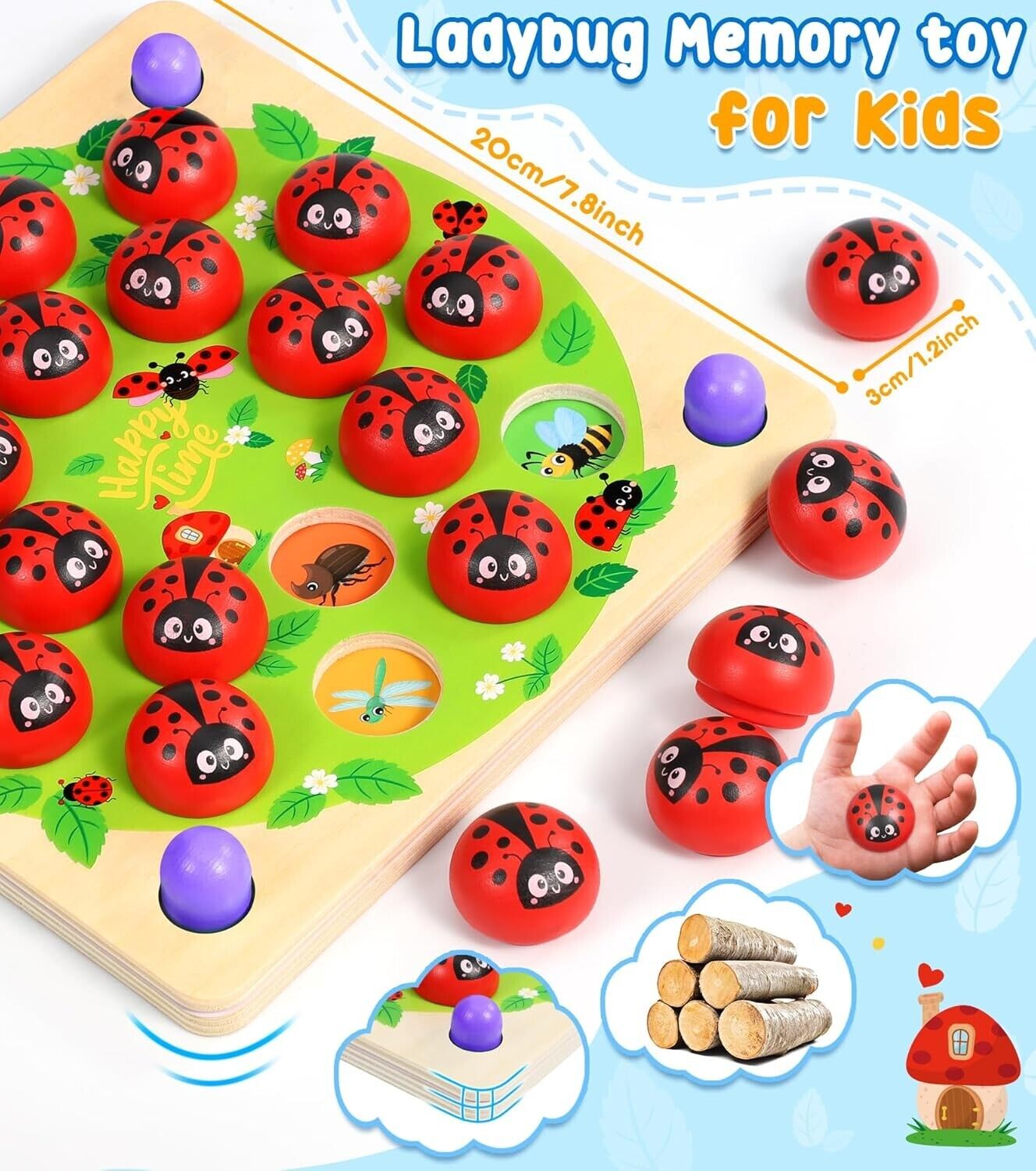 - 【Geschenk für Mädchen Junge 3 4 5 Jahren】 Dieses Marienkäfer-Memory-Spielzeug ist ein gut verarbeitetes Holzspielzeug mit schöner Verpackung. Es ist ein sehr gutes Montessori Spielzeug, das für Kinder im Alter von 3,4,5 Jahren geeignet ist. Es sorgt nicht nur für Unterhaltung, sondern fördert auch die kognitiven Fähigkeiten und erleichtert die Kommunikation zwischen Familienmitgliedern. Ob Geburtstag oder Feiertag, dieses Marienkäfer-Erinnerungsset ist eine tolle Geschenkidee.