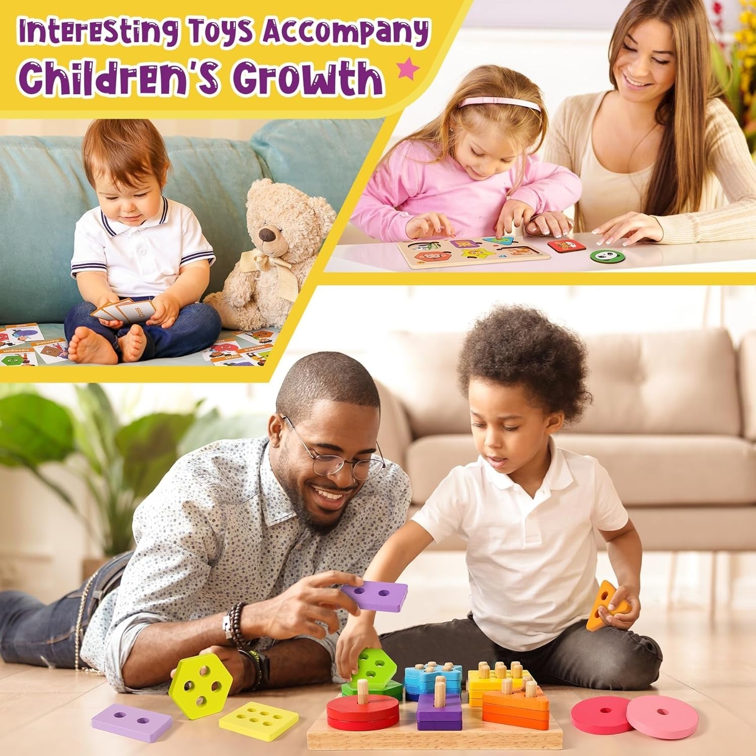 • 【Lernspielzeug 1 2 3 Jahr】 Dieses baby spielzeug verfügt über umfangreiches Zubehör und verschiedene Spielmöglichkeiten. Kinder schaffen je nach Form und Farbe von Holzspielzeug unterschiedliche Gebäude oder Muster, um die Fantasie der Kinder anzuregen. Holzpuzzle und Lernkarten zum Erlernen von Tiermustern, Wörtern und mehr. Es gibt auch lustige und interessante sortierspiel and steckspiel .Mit diesem Montessori Holzspielzeug Spielset können Kleinkinder noch mehr Spielmöglichkeiten entdecken