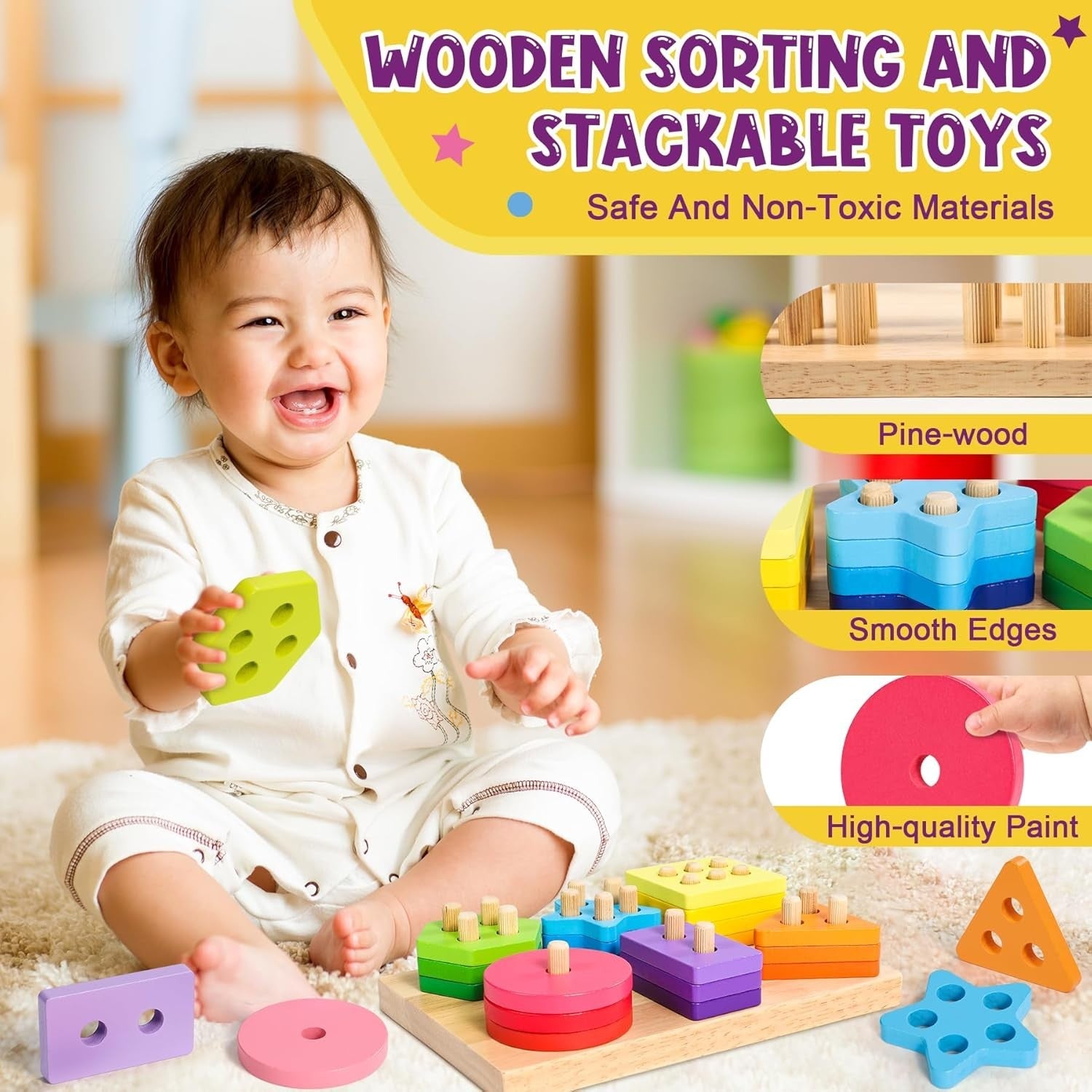 • 【Große Größe und Hohe Qualität】Subtail Montessori spielzeug bestehen aus größeren geometrischen Formblöcken, die für Kinder leichter zu greifen sind als die meisten herkömmlichen kleinen baby spielzeug. Ihre Kinder werden es lieben. Dieses Holzspielzeug besteht aus 100 % ungiftiger Farbe auf Wasserbasis über Naturholz mit glatten Kanten für Langlebigkeit und verfügt über eine solide Basis aus Gummibaumholz und stabile Stifte