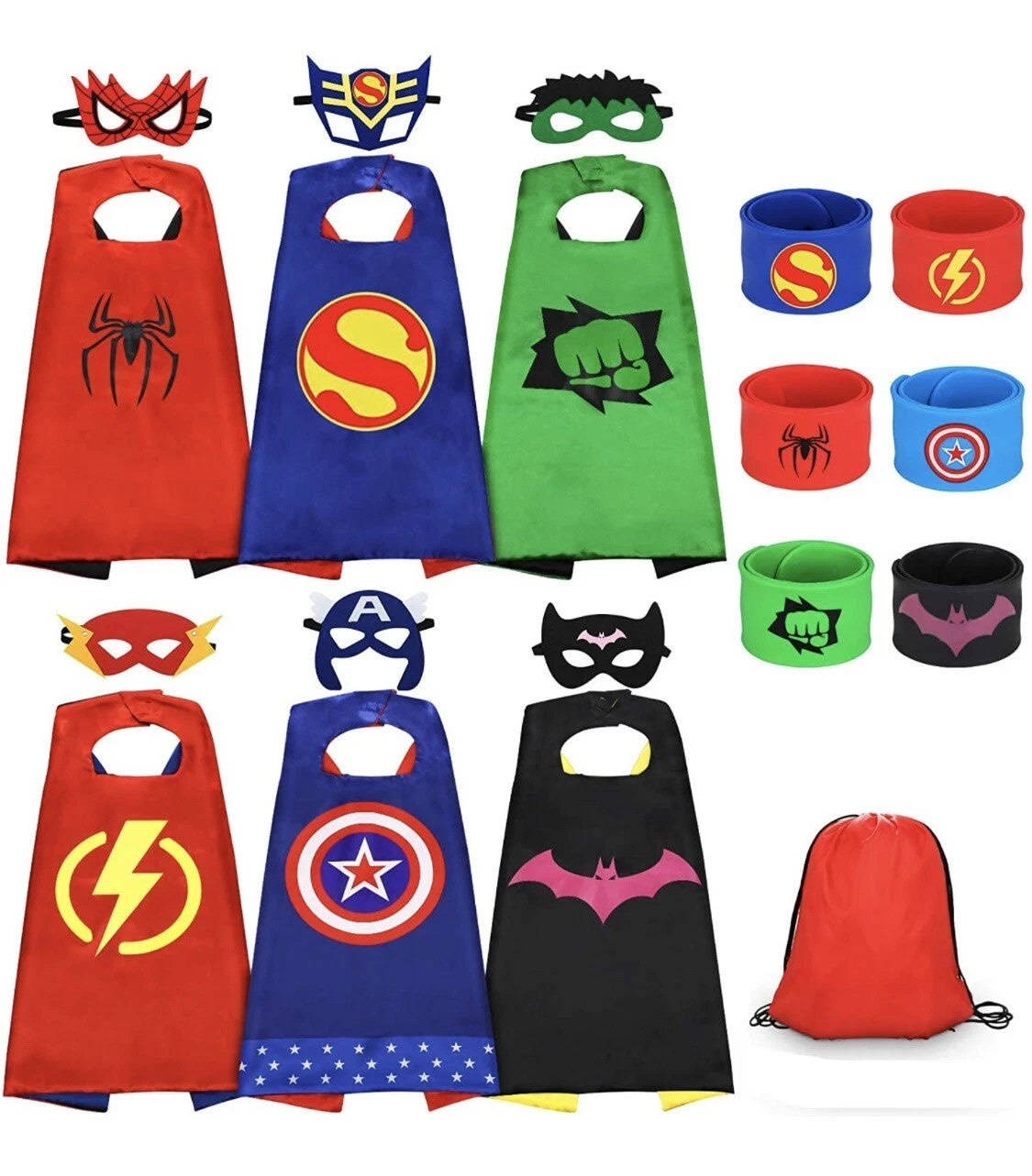 Superhelden 6 Kinderkostüme mit Maske und Armband
