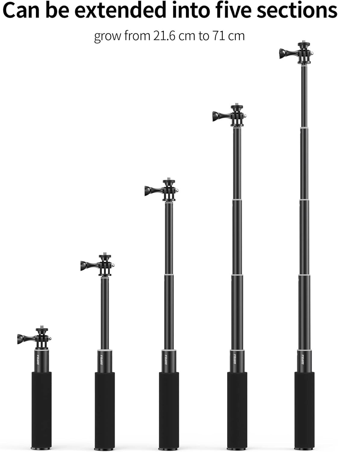 • 【Bis zu 71 cm】 Zugstangendesign, fünfstufige Teleskopeinstellung, kann in der Länge von 21,6-71 cm frei eingestellt werden. Denken Sie jedoch daran, jedes Gelenk zu drehen, um es zu verriegeln.