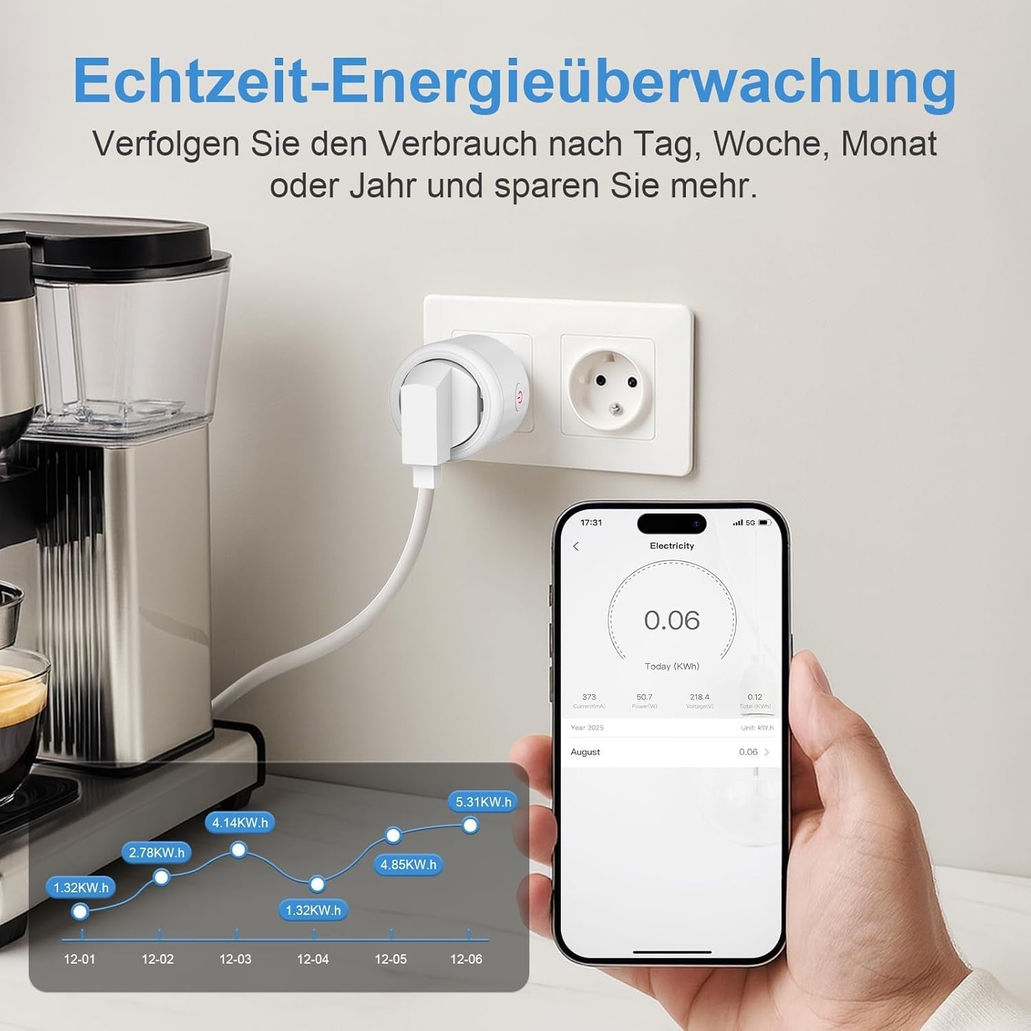 • 【Neuen Design Stromzähler für Steckdose】NEUE VERSION Stromverbrauchsmesser zur Messung von Leistung, Gesamtstrom (kWh), Spannung und Strom.Erfüllt die meisten Anforderungen an die Leistungsmessung. Sparen Sie Energie und Geld, schützen Sie die Erde und senken Sie Ihre Rechnungen. Ideal für Zuhause.