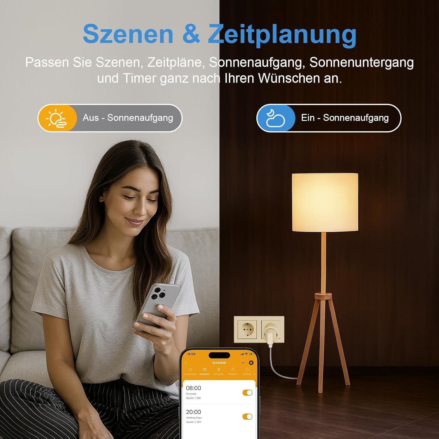 • 【Zeitplanung und Timer-Funktion】 Die intelligente SURFOU-Steckdose organisiert Ihren Alltag und erstellt Routinen mit vordefinierten Ein/Aus-Countdowns über die Tuya/Smart Life App, um wiederkehrende Aktionen wie das Ausschalten der Lampe zu optimieren.