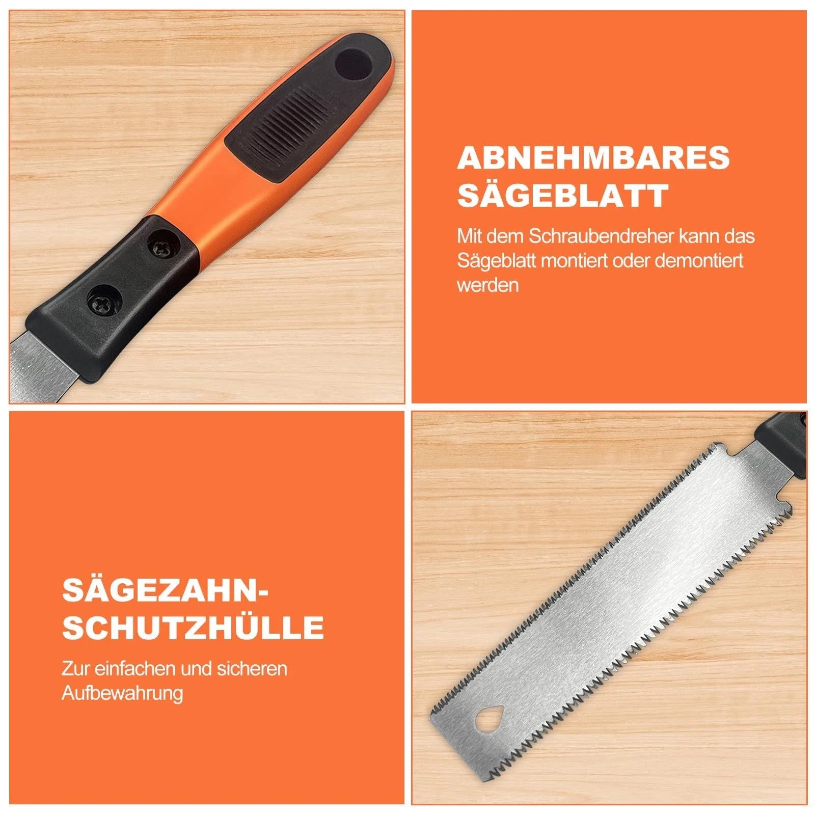 • Langlebige Klinge mit austauschbarem Design: Die präzise geschliffene Klinge bleibt auch bei intensiver Nutzung lange scharf und wird sicher durch Schrauben am Griff befestigt. Dies gewährleistet Stabilität und ermöglicht einen einfachen Klingenwechsel. Die Säge eignet sich nicht nur für Holz, sondern auch für präzise Schnitte bei Materialien wie Kunststoff und ist ein unverzichtbares Werkzeug für zahlreiche handwerkliche und Reparaturprojekte.