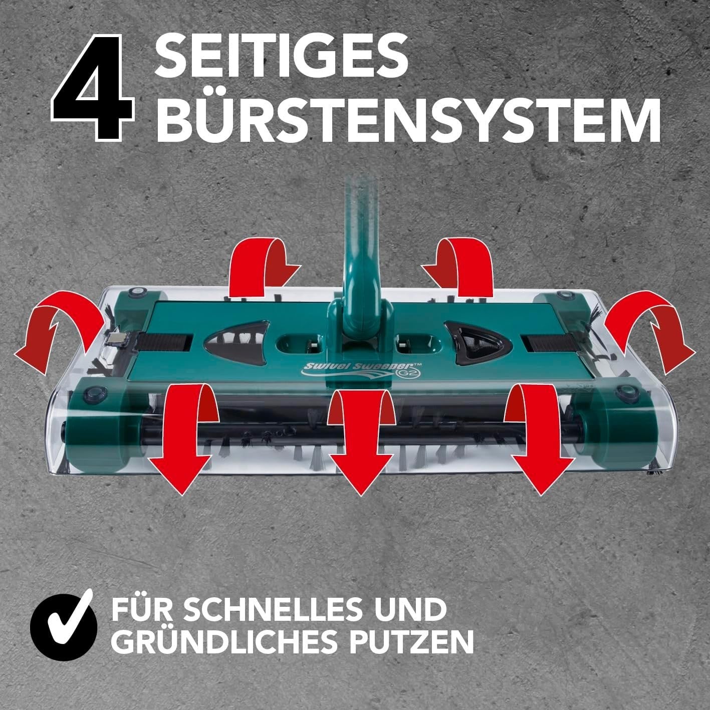 • VIER ROTIERENDE BÜRSTEN - Das Geheimnis seiner effektiven und schnellen Reinigungskraft sind die in alle vier Richtungen rotierenden Rundbürsten. Sie gleiten über Schmutz und nehmen ihn restlos auf.