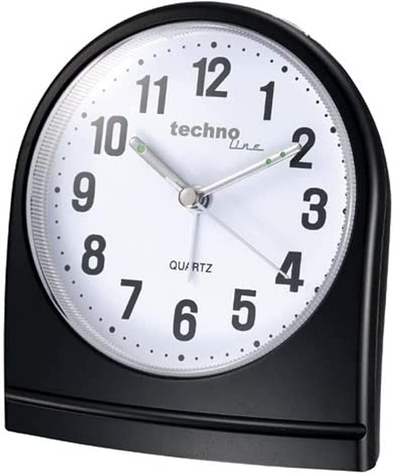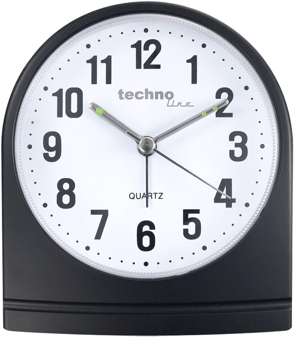 Technoline Quarzwecker Modell S, Weckalarm mit Schlummerfunktion, schwarz, nachtleuchtende Zeiger, analog, 95 x 56 x 110 mm