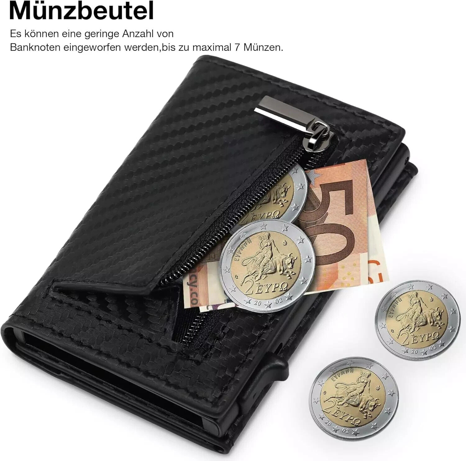• 【Slim Card Holder】Er bietet Platz für bis zu 8 Bankkarten oder Karten (5 im Etui und 2/3 in der Innentasche), mit einer Innentasche auf der linken Seite für Geldscheine und ein Münzfach für Ihren täglichen Bedarf.
