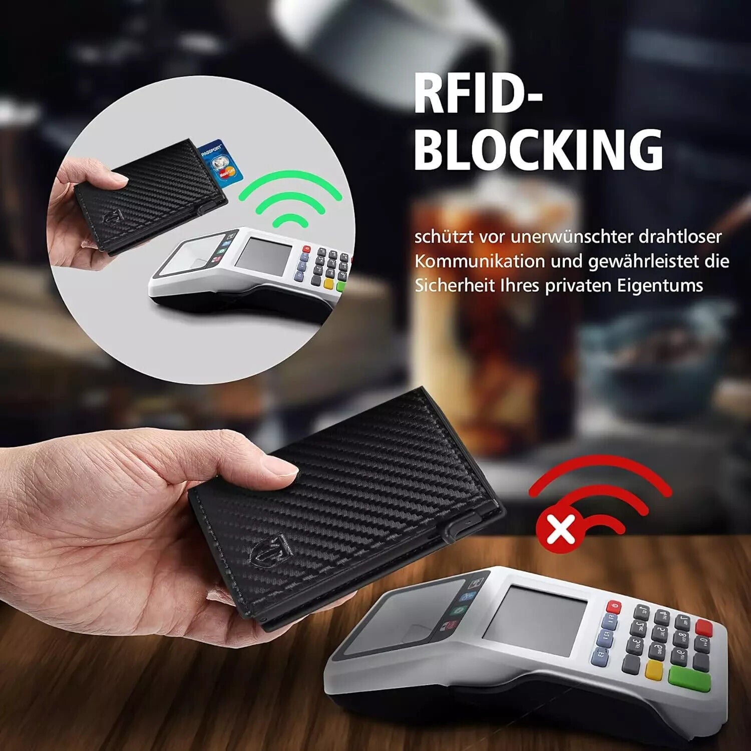 • 【Datenschutz und Sicherheit】 Die RRID-Schutztechnologie schützt Ihre Kredit- und ID-Karten vor Klonen und anderen Betrügereien. In diesem Kartenetui können Sie Ihre wichtigen und häufig verwendeten Karten unbesorgt aufbewahren.