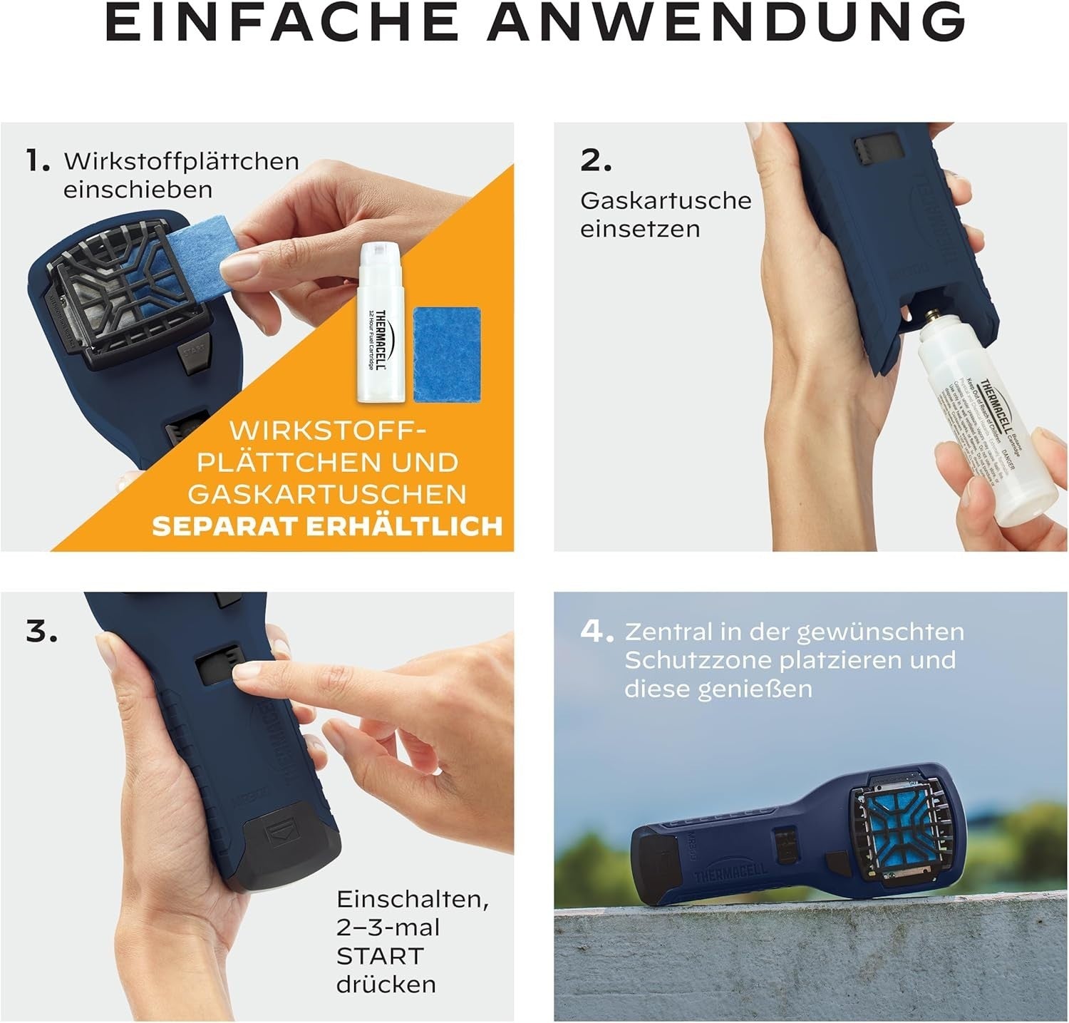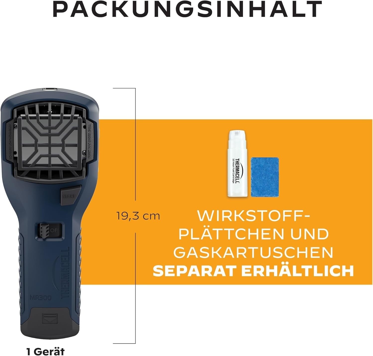 - Im Lieferumfang enthalten ist ein Thermacell Proactive Handgerät. Die zur Verwendung erforderlichen Thermacell Mückenabwehr-Sets (Wirkstoffplättchen und Gaskartuschen) fallen in Deutschland seit dem 01.01.2025 unter die Regelungen der Biozidrechts-Durchführungsverordnung (ChemBiozidDV) und dürfen nur nach vorherigem Abgabegespräch und nicht in Selbstbedienung abgegeben werden.