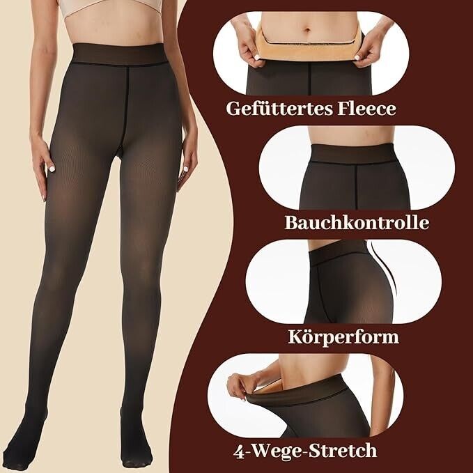 Thermo Strumpfhose Damen Winter Gefütterte Strumpfhose mit Fleece Bauchweg Warme
