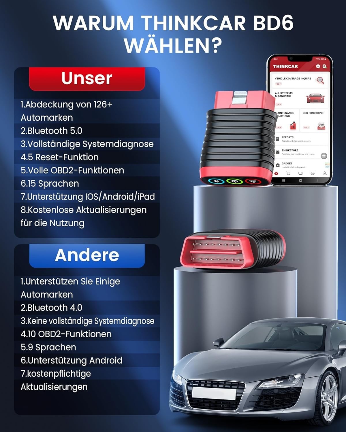 ThinkCar BD6 OBD2 Diagnosegerät Mit Alle Systemdiagnosen + 5 Servicefunktionen(B