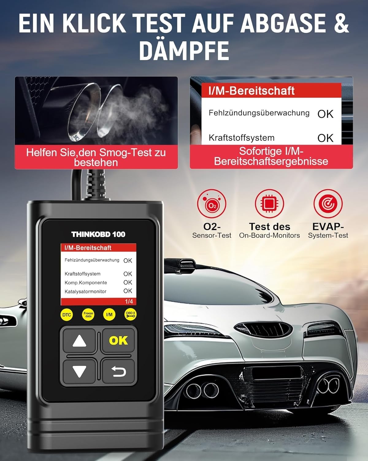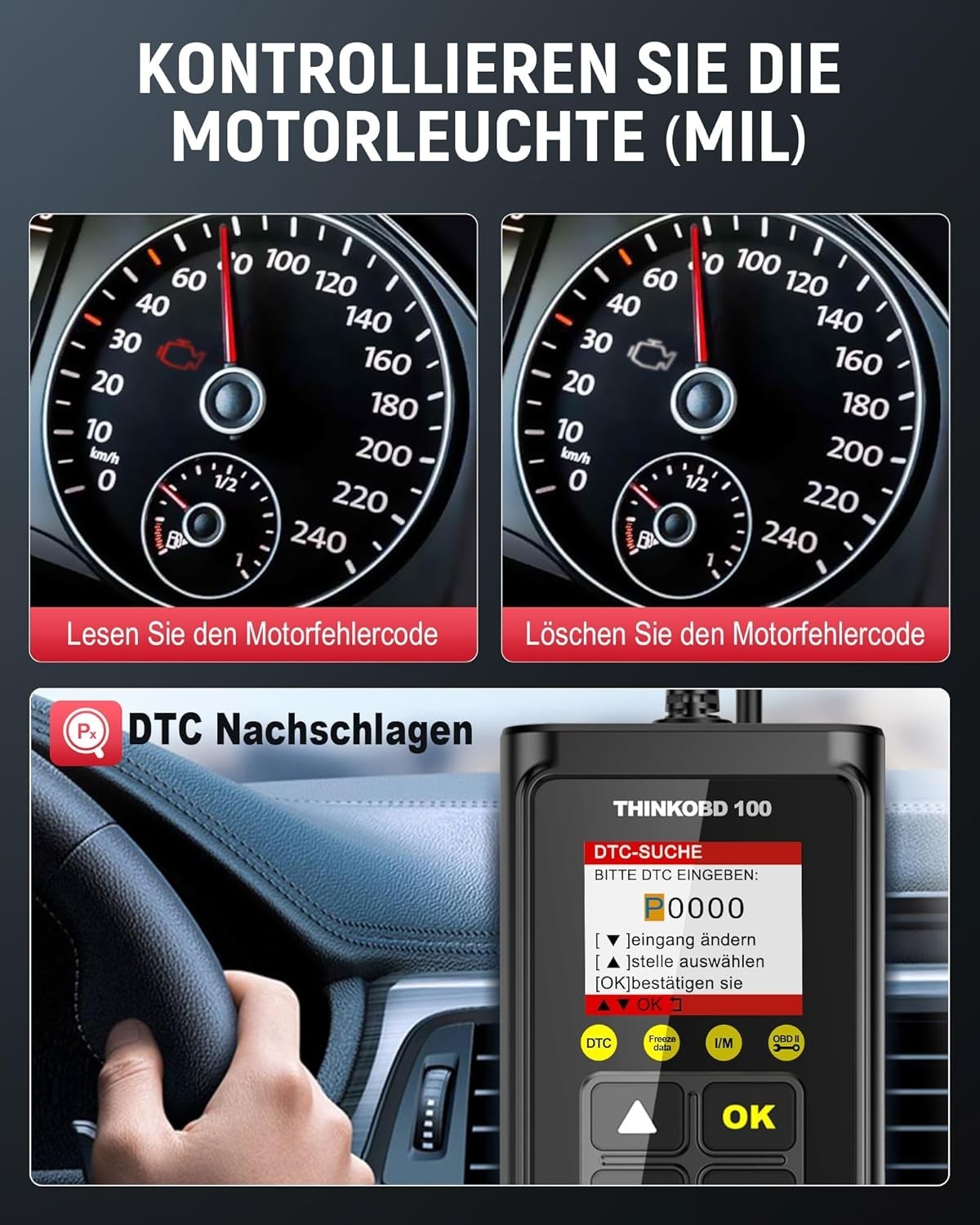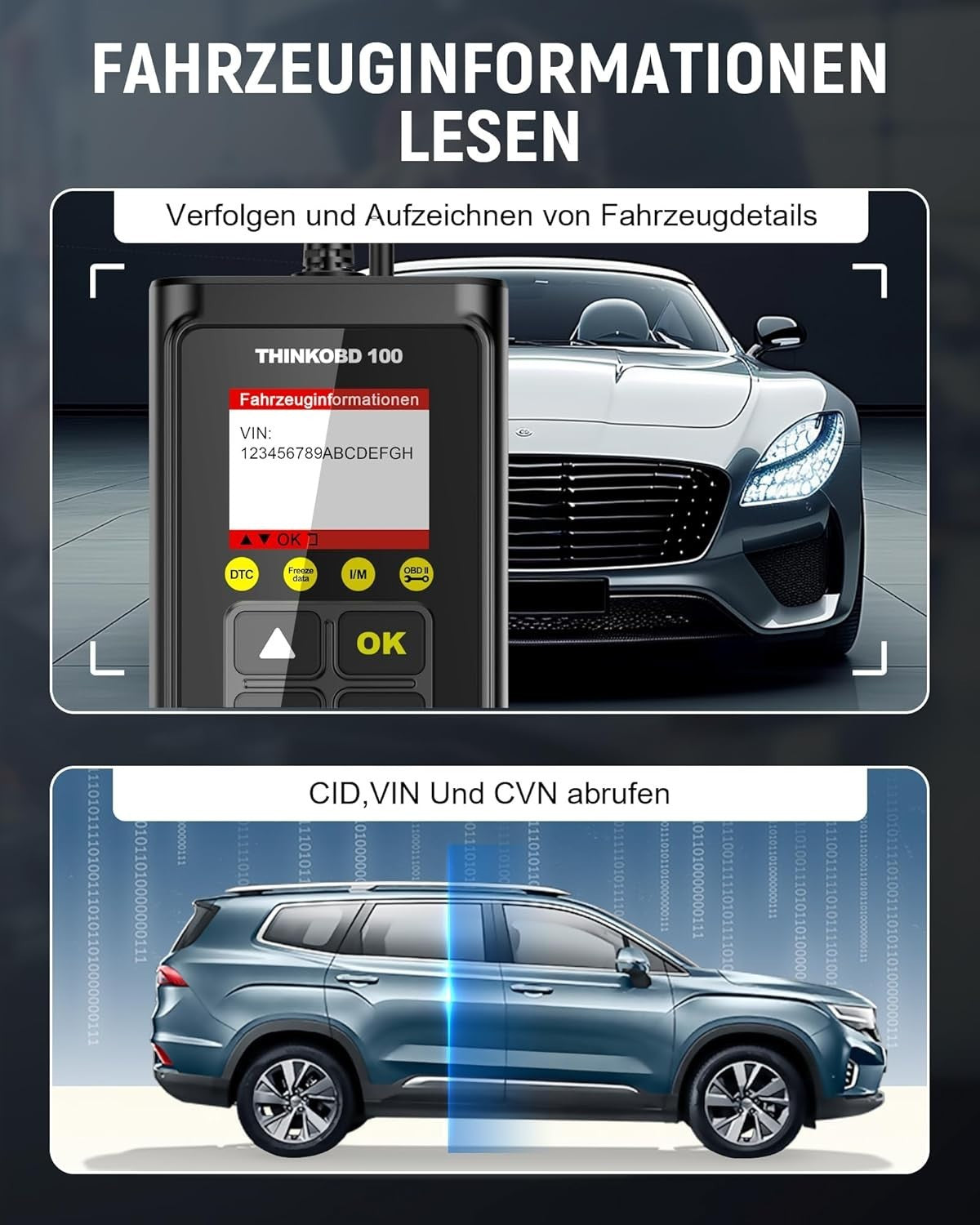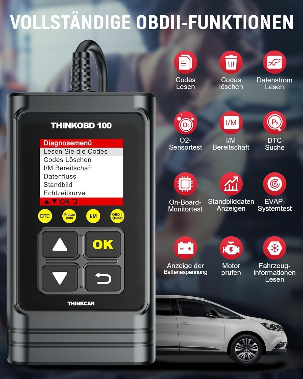 THINKOBD 100 Diagnosegerät Auto, Verbesserter Universal Codeleser Motor-Scanner
