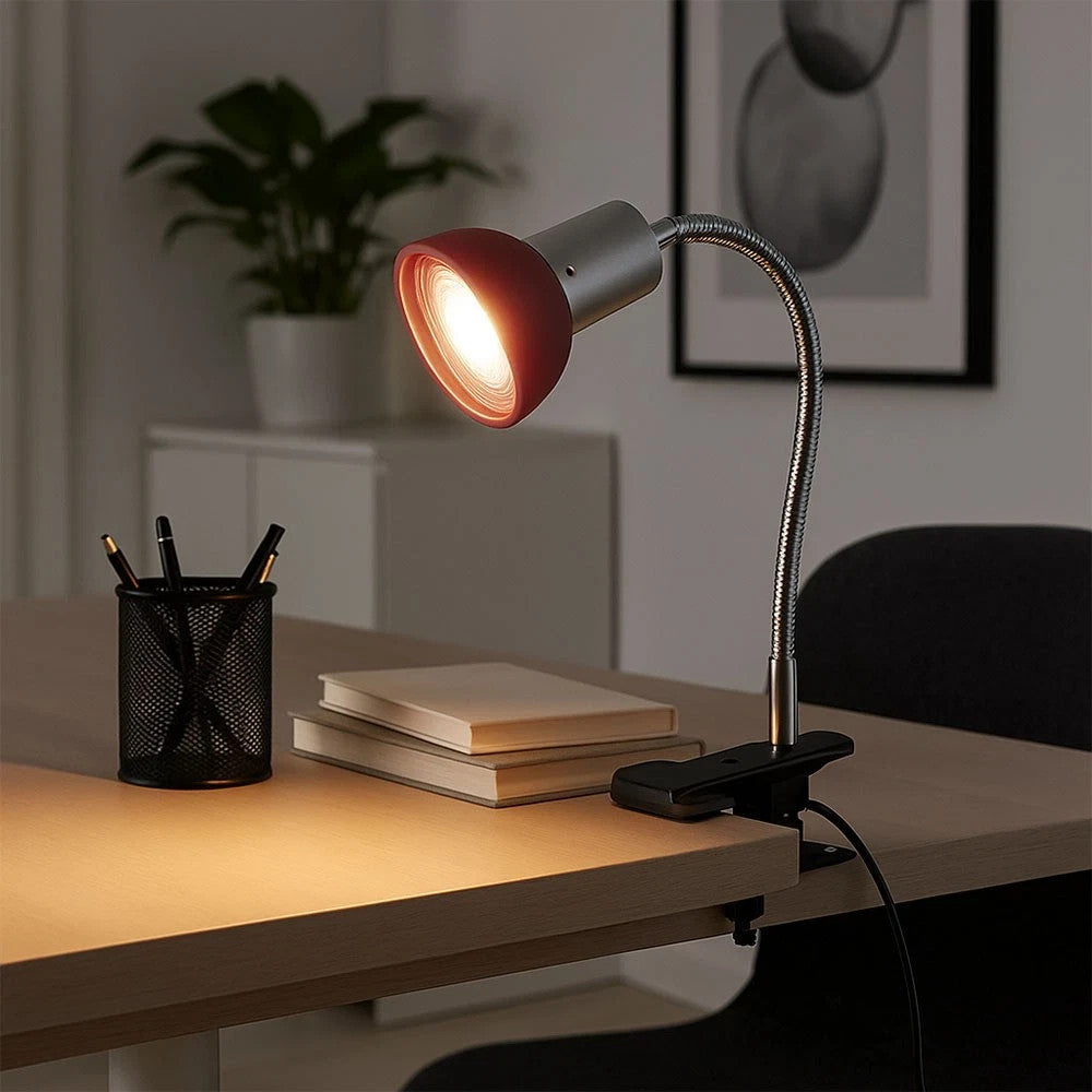 Tischlampe Tischleuchte Klemmleuchte Spot flexibel Metall titanfarben rot 1x LED