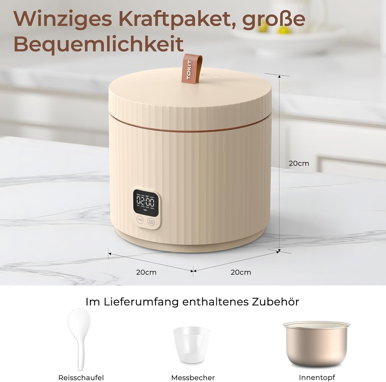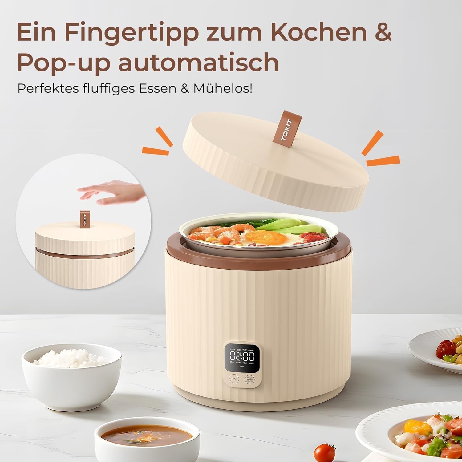TOKIT 1.5L Pro Reiskocher Klein Mini aber Multifunktionen mit Display-Touch-Taste für 1-3 Personen Keramisch beschichteter Antihaft-Innenreistopf