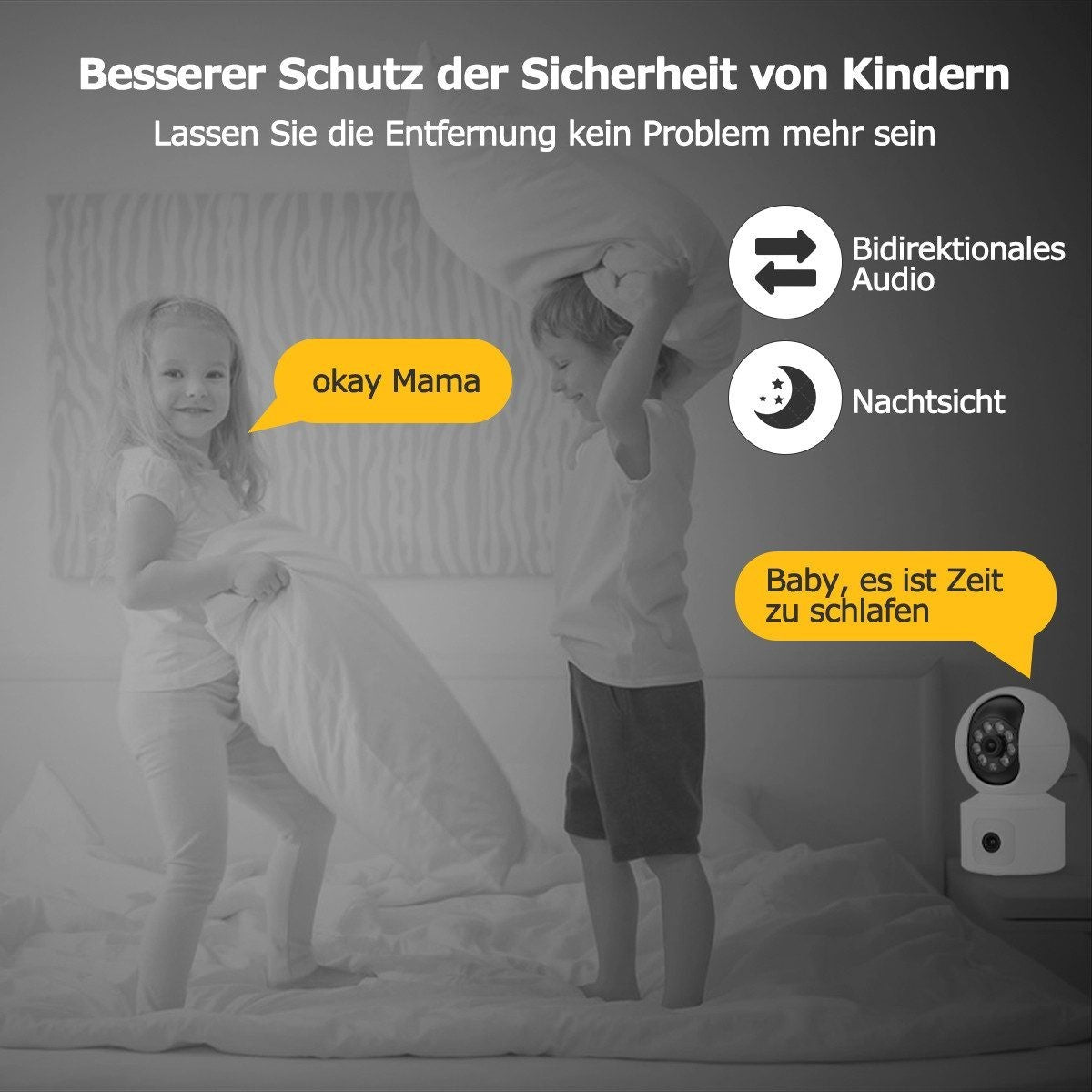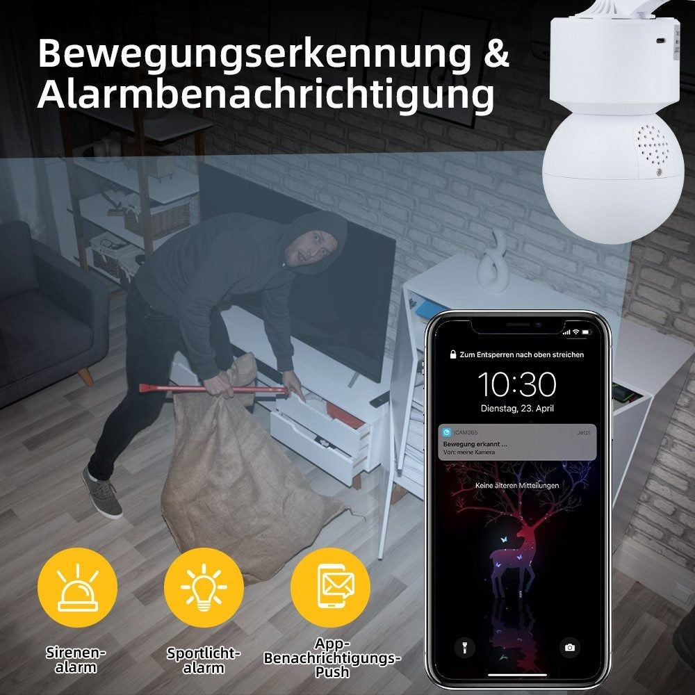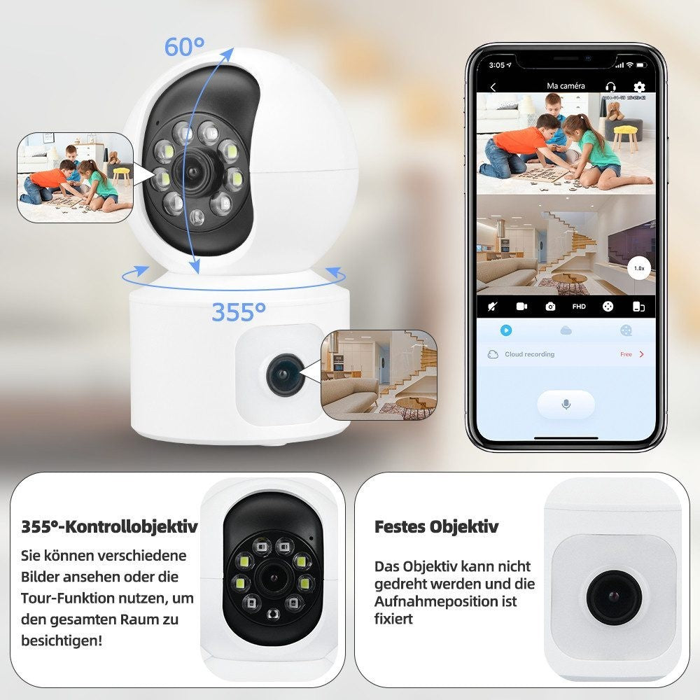 • Die Zwei-Wege-Audio-Funktion gibt Ihrem Baby und Ihren Haustieren mehr Sicherheit, und der eingebaute Alarm hilft, Eindringlinge abzuwehren und Ihre Familie sicher zu halten!