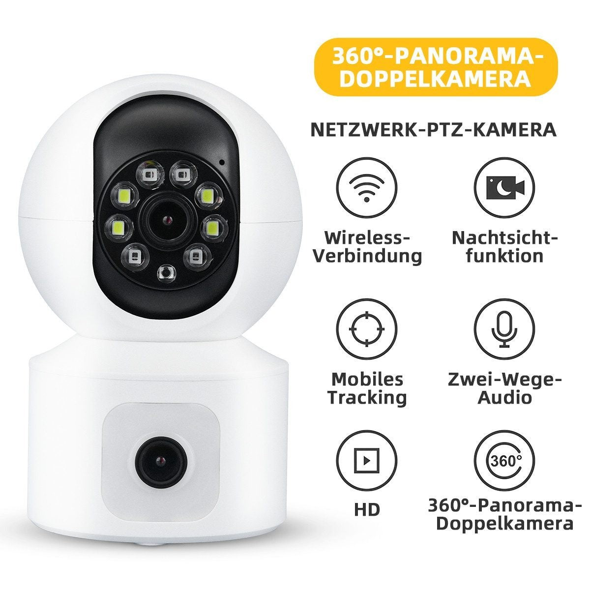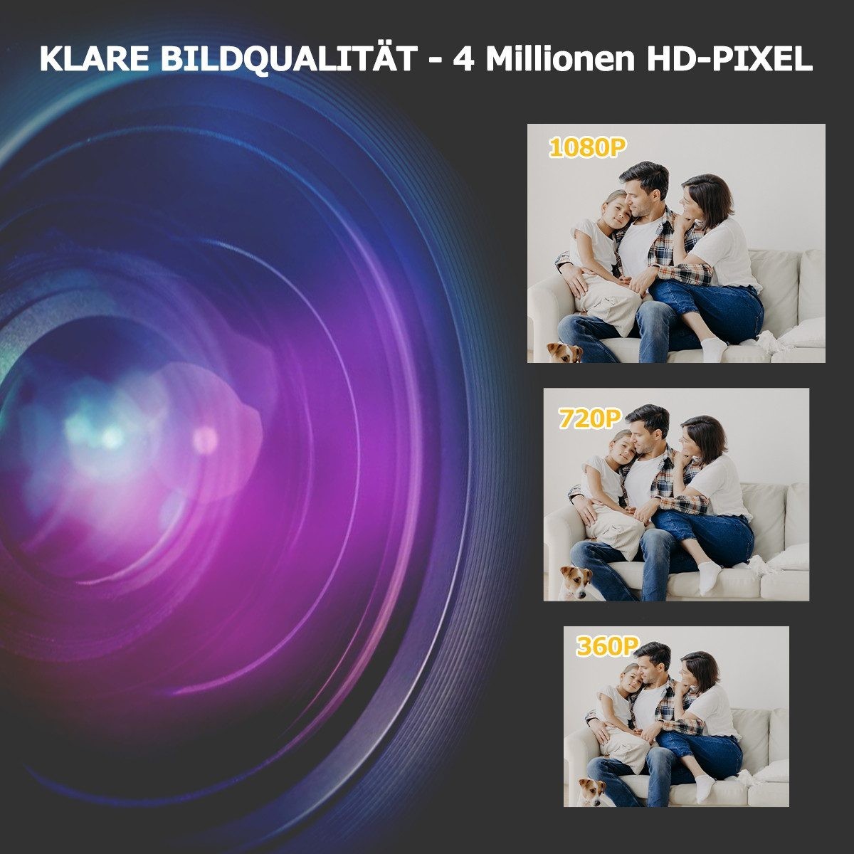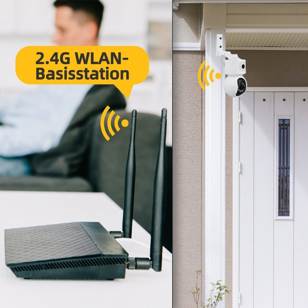 • Die Zwei-Wege-Audio-Funktion gibt Ihrem Baby und Ihren Haustieren mehr Sicherheit, und der eingebaute Alarm hilft, Eindringlinge abzuwehren und Ihre Familie sicher zu halten!