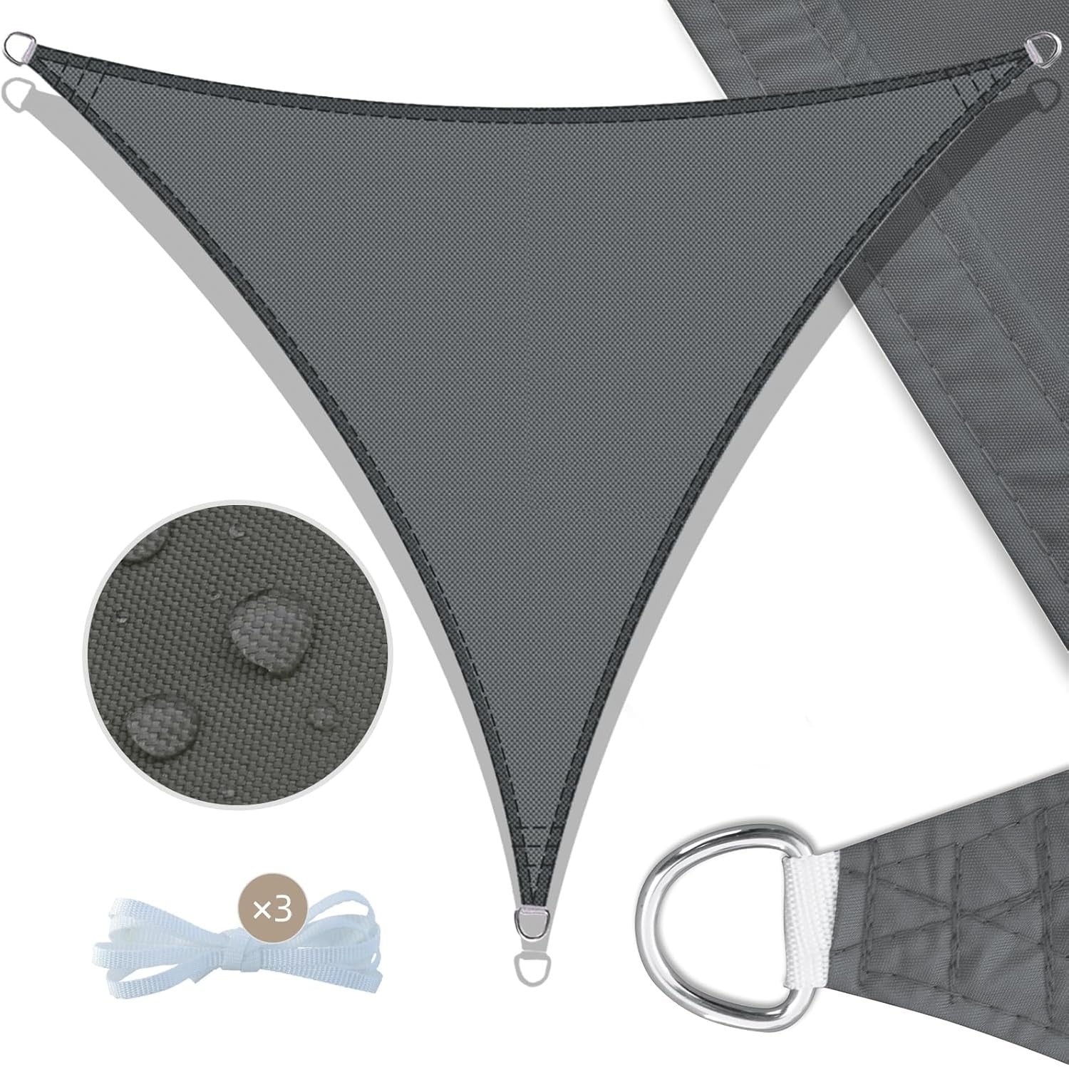 UMI Sonnensegel Wasserdicht 4x4x4m Dreieckig Sonnenschutz Wetterschutz PES Polyester Segel Baldachin 95% UV Schutz mit Seilen für Garten Balkon Terrasse- Anthrazit
