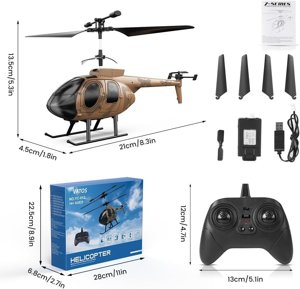 VATOS 2.4G Ferngesteuerter Hubschrauber: Camouflage Militär RC Flugzeuge mit Gyro | 3 Kanäle positioniert Höhe Indoor RC Helicopter Spielzeug Geschenke für Jungen Jugendliche Erwachsene