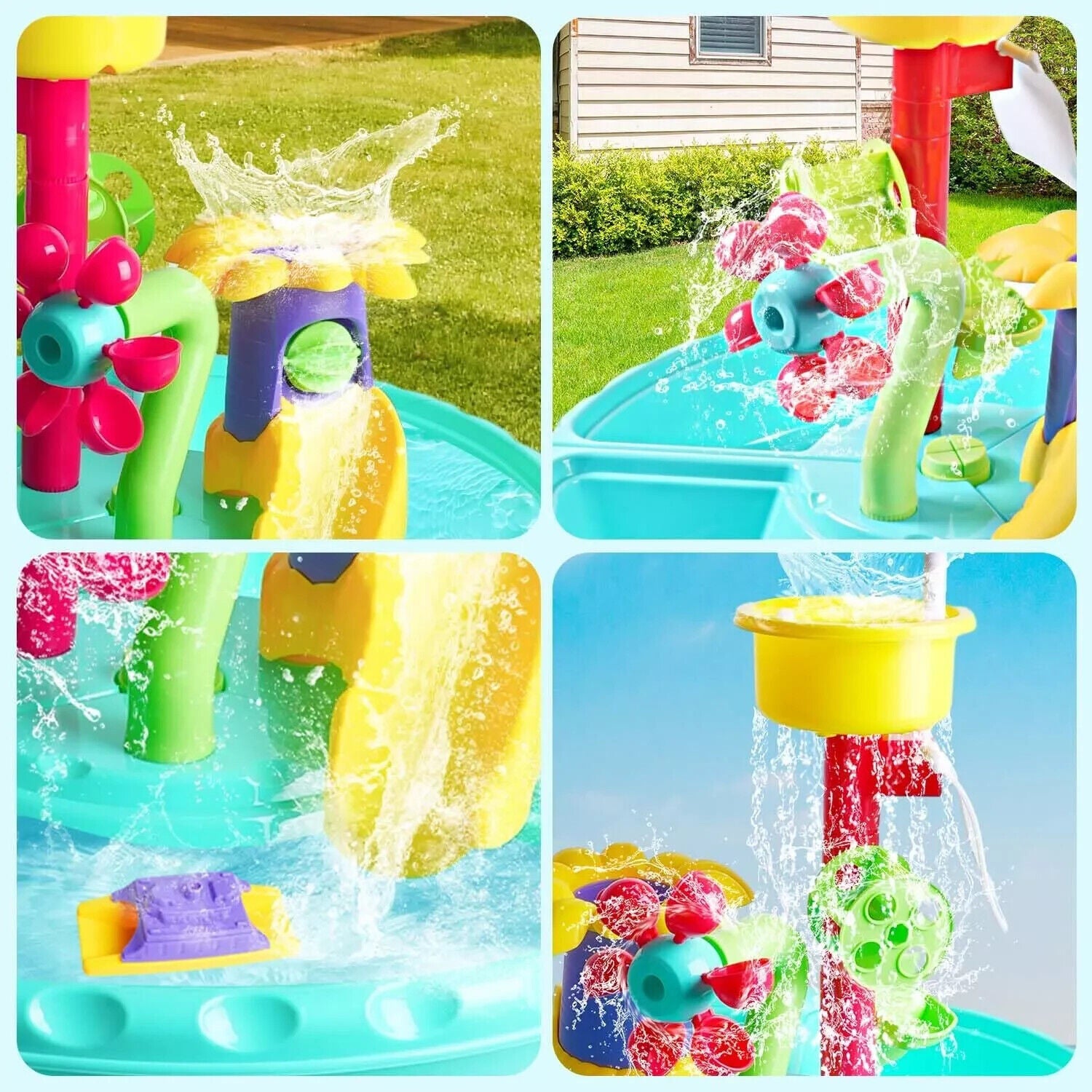 - 【31 STÜCK ZUBEHÖR】Dieser Wassertisch für Kinder wird mit farbenfrohem Zubehör geliefert, darunter ein Wassertisch, ein Blumenrad, ein Baumwasserweg, ein Sprinklerturm, eine Flagge, ein Hocker, ein Wasserrad, ein Eimer, ein Boot, ein Sieb, eine Schaufel und ein Rechen, verschiedene Sanddruckformen und mehr. Ob Kinder im Sand spielen, nach Schätzen graben oder einfach nur das kühle Nass genießen, dieser Wassertisch im Freien sorgt mit Sicherheit für stundenlange Unterhaltung.