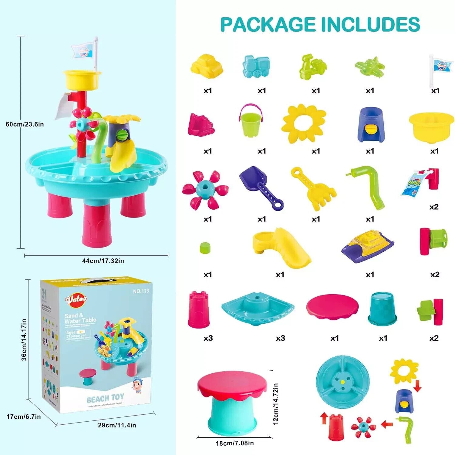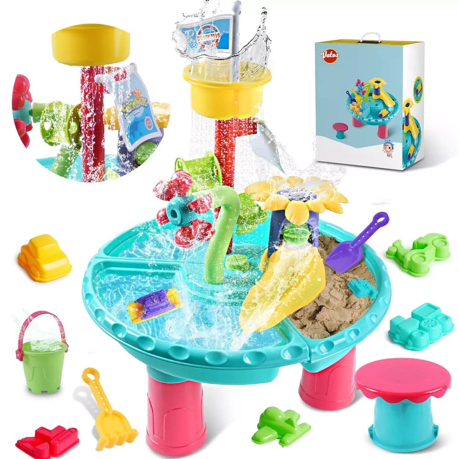 VATOS 3 in 1 Wasserspieltisch 31 STÜCK Set Sand Wassertisch Sommer Spielzeug