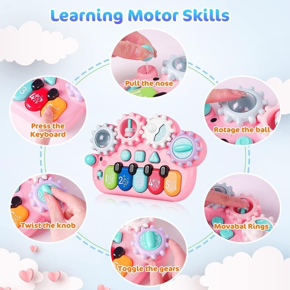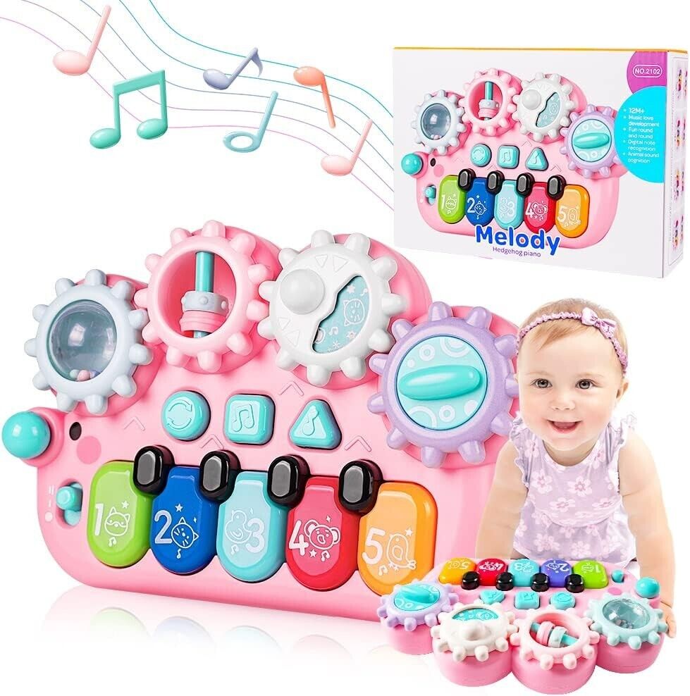 VATOS Baby Montessori Musik Spielzeug ab 1 Jahr Mädchen - 6 in 1 Motorikspielzeug Baby Sensorik Spielzeug ab 6 9 12 18 Monate+, Infant Sensorik Spielzeug Piano Keyboard für 1 Jahr + | 12 Monate+