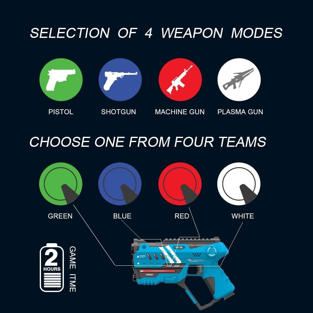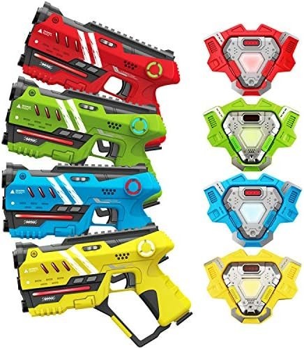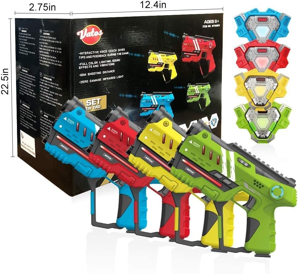 VATOS Lasertag - Infrarot Laserpistole Spiel mit Westen 4 Packung - Multifunktion Lasertag Spiel Set für Kinder, und Erwachsene Indoor Outdoor, Spaß Geschenke für 6 Jahre+ Jungen Mädchen (4 Sätze)