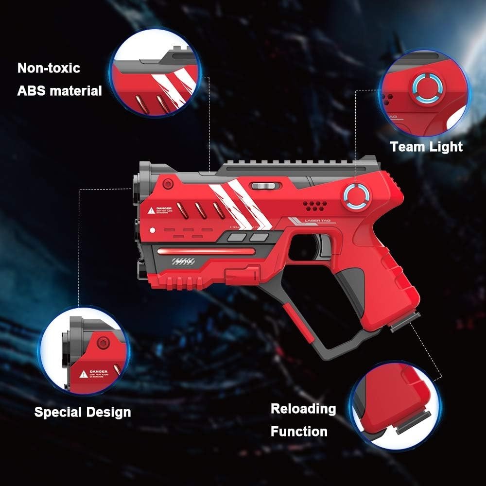 • Multi-Plaser und 4 Modi -- Das lasertag enthält 4 Guns und 4 Westen. Durch den Mehrspieler-Modus wird die Teamarbeit im Spiel wichtiger. Schalten Sie den Schussmodus von Pistole, Schrotflinte, Maschinengewehr und Rakete geschickt um. Sie werden den Kampf einfacher gewinnen. Darüber hinaus sind exzellentes Urteilsvermögen und Konzentration der Schlüssel zum Sieg des Spiels.