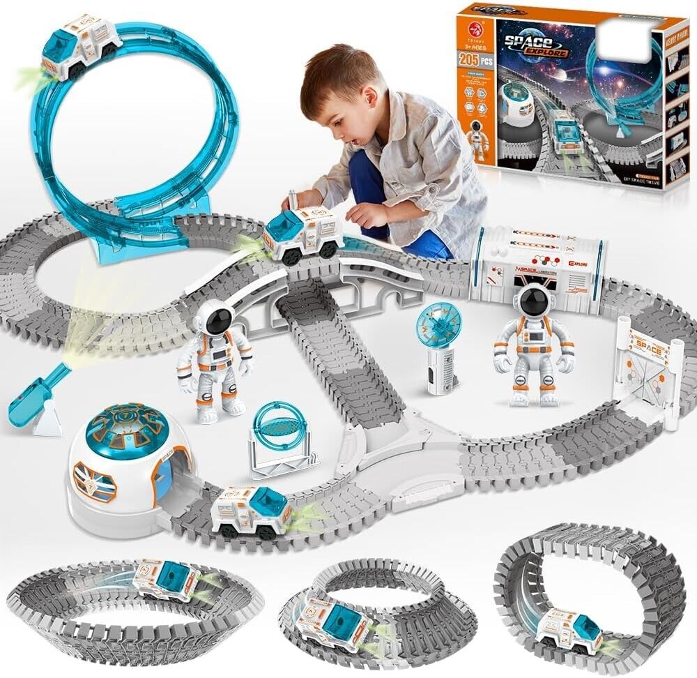 VATOS Raum Rennstrecken Track Spielzeugautos für Kinder, 205 pcs Konstruktion Rennstrecken mit 1pcs Auto und Flexible Track Set erstellen Geschenke für 3 4 5 6 Jahre alt Jungen Mädchen