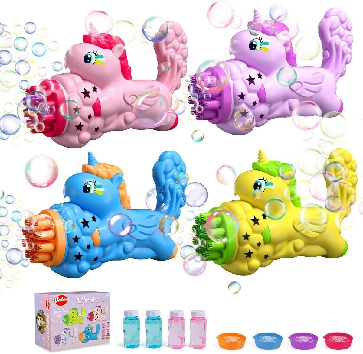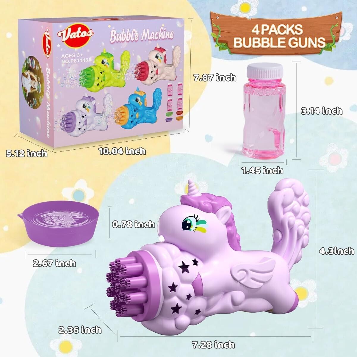 VATOS Seifenblasenmaschine 4 Stück, Seifenblasenpistole für Kinder mit 3 x 50ml Seifenblasenflüssigkeit, Regenbogen Seifenblas Spielzeug Indoor Outdoor Sommer Geschenk für Junge Mädchen ab 3 Jahre