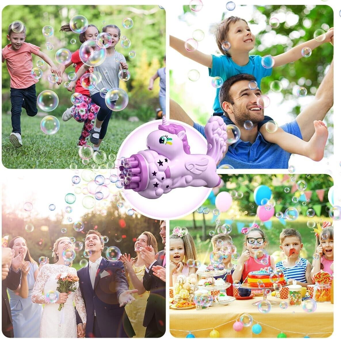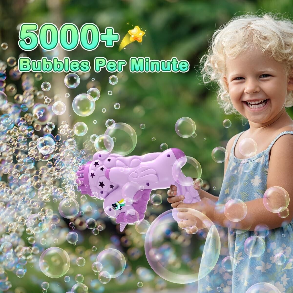 - EXQUISITES FORMDESIGN – Dieses Seifenblasenpistolen ist exquisit geformt und in den vier leuchtenden Farben Pink, Blau, Lila und Grün erhältlich, sodass Kinder es sofort lieben werden. Jede Seifenblasenmaschine verfügt über 15 Seifenblasenlöcher, die in einer Minute Tausende von bunten Seifenblasen. Die Seifenblasenmaschine ist außerdem mit LED-Leuchten ausgestattet, die die Seifenblasen tagsüber schöner machen können, und das nachts ausgestrahlte Licht macht die Seifenblasen bunter.