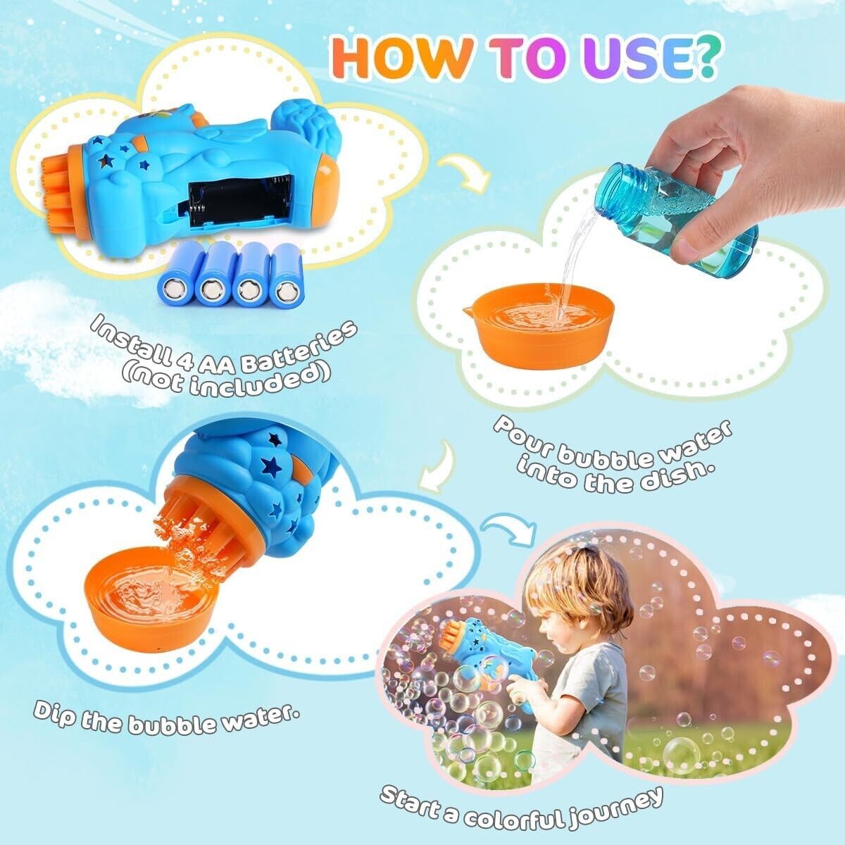 - SICHERHEIT UND HOCHWERTIGES MATERIAL - Die Seifenblasenmaschinen bestehen aus sicherem, hochwertigem und langlebigem ABS-Kunststoff. Die Seifenblasenflüssigkeit besteht aus ungiftiger Seifenflüssigkeit, ist von Natur aus mild, sicher und reizt den menschlichen Hautkontakt nicht Die Seifenblasenpistole ist sicher für Kinder, Kleinkinder, Haustiere und Erwachsene, einfach zu bedienen und leicht zu reinigen.