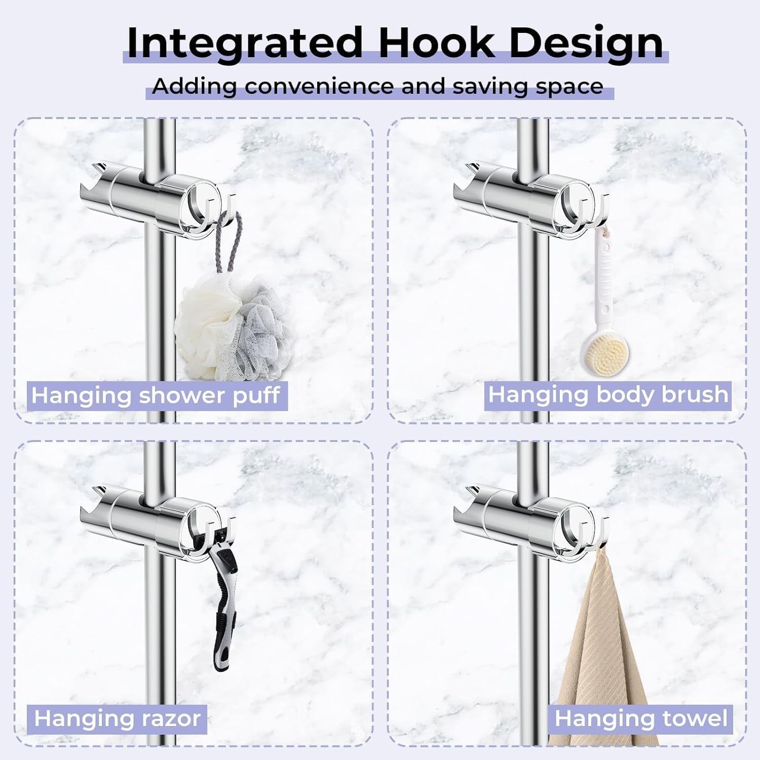 • 【Hakendesign】Dieser Halterung Duschkopf verfügt über ein Dual-Haken-Design, das das Aufhängen von Handtüchern oder Duschbürsten erleichtert und so zu einem besser organisierten Badezimmer beiträgt.