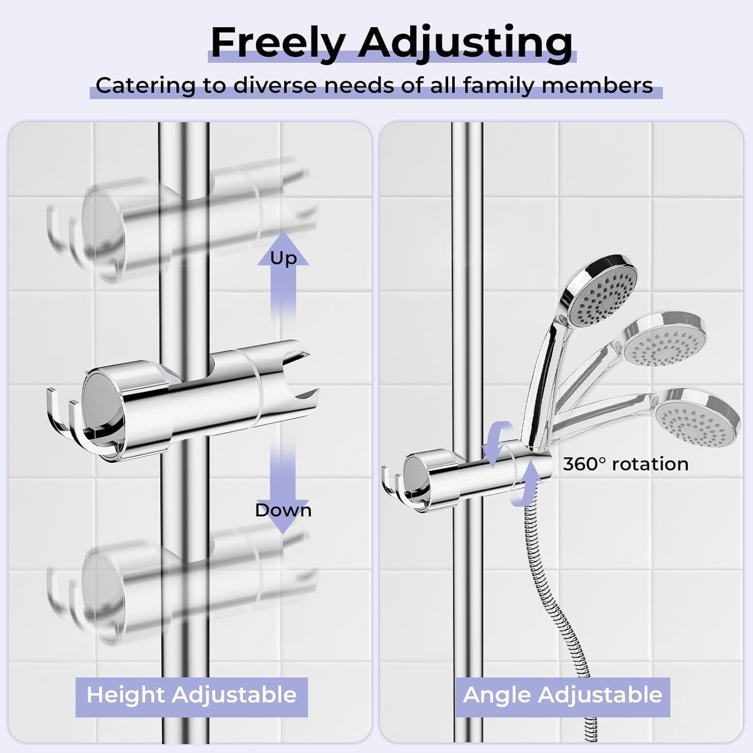• 【Freie Anpassung】Der Brausehalter verfügt über umfassende All-Rotationsfähigkeiten sowie mühelose Winkel- und Höhenverstellungen, um den unterschiedlichen Bedürfnissen aller Familienmitglieder gerecht zu werden.