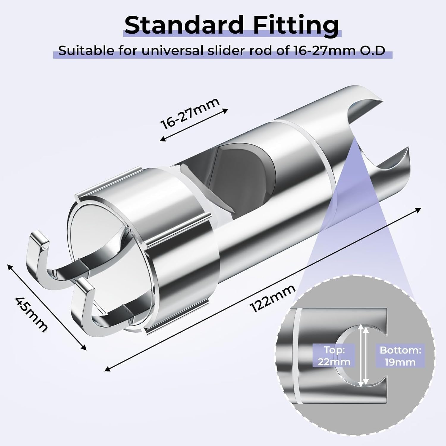 • 【Universelle Kompatibilität】Diese Handbrause Halterung passt auf die meisten Standard-Duschköpfe oder Handbrauseklemmen und ist universell an runde Duschstangen mit einem Außendurchmesser von 16 bis 27 mm anpassbar.