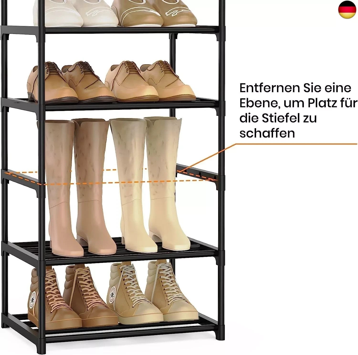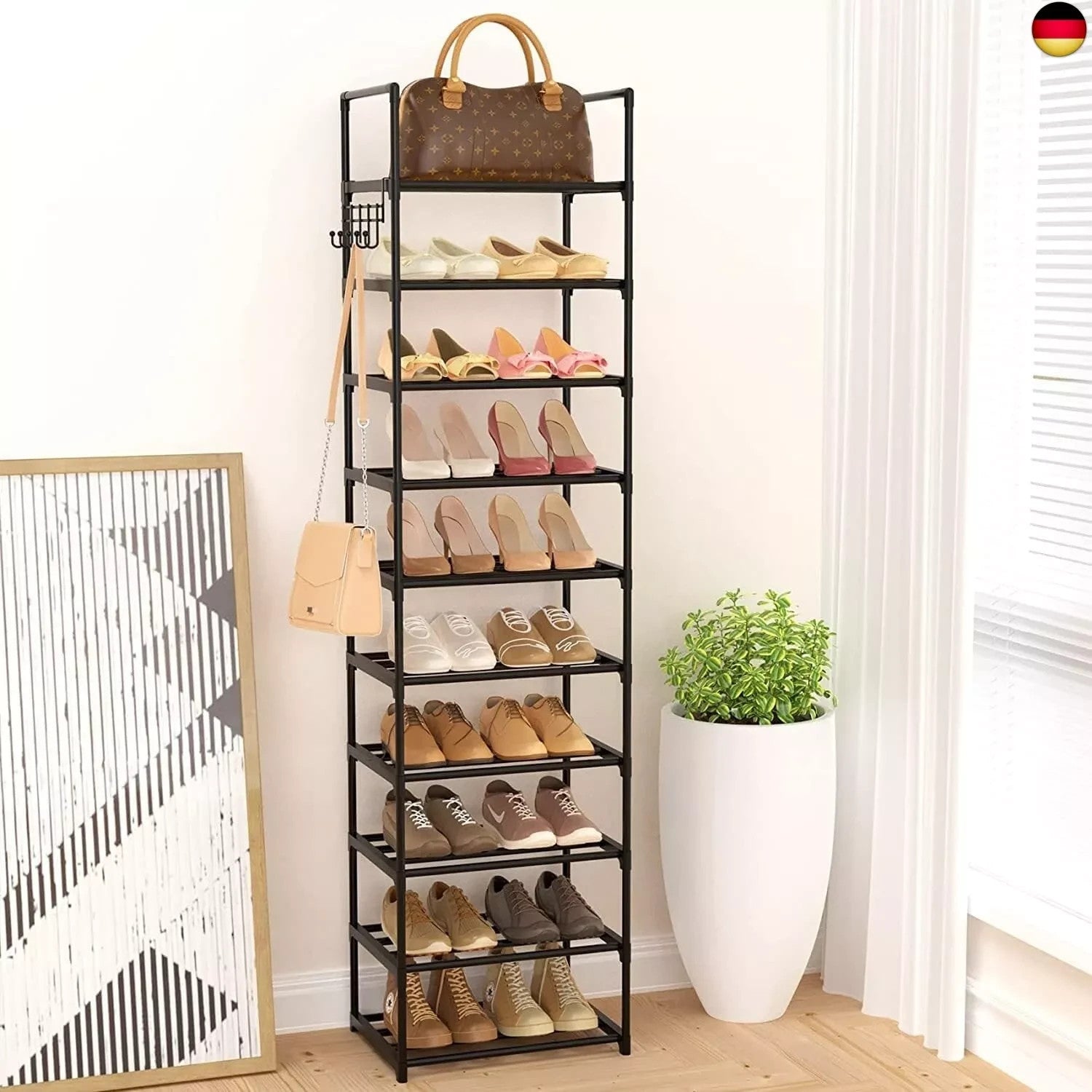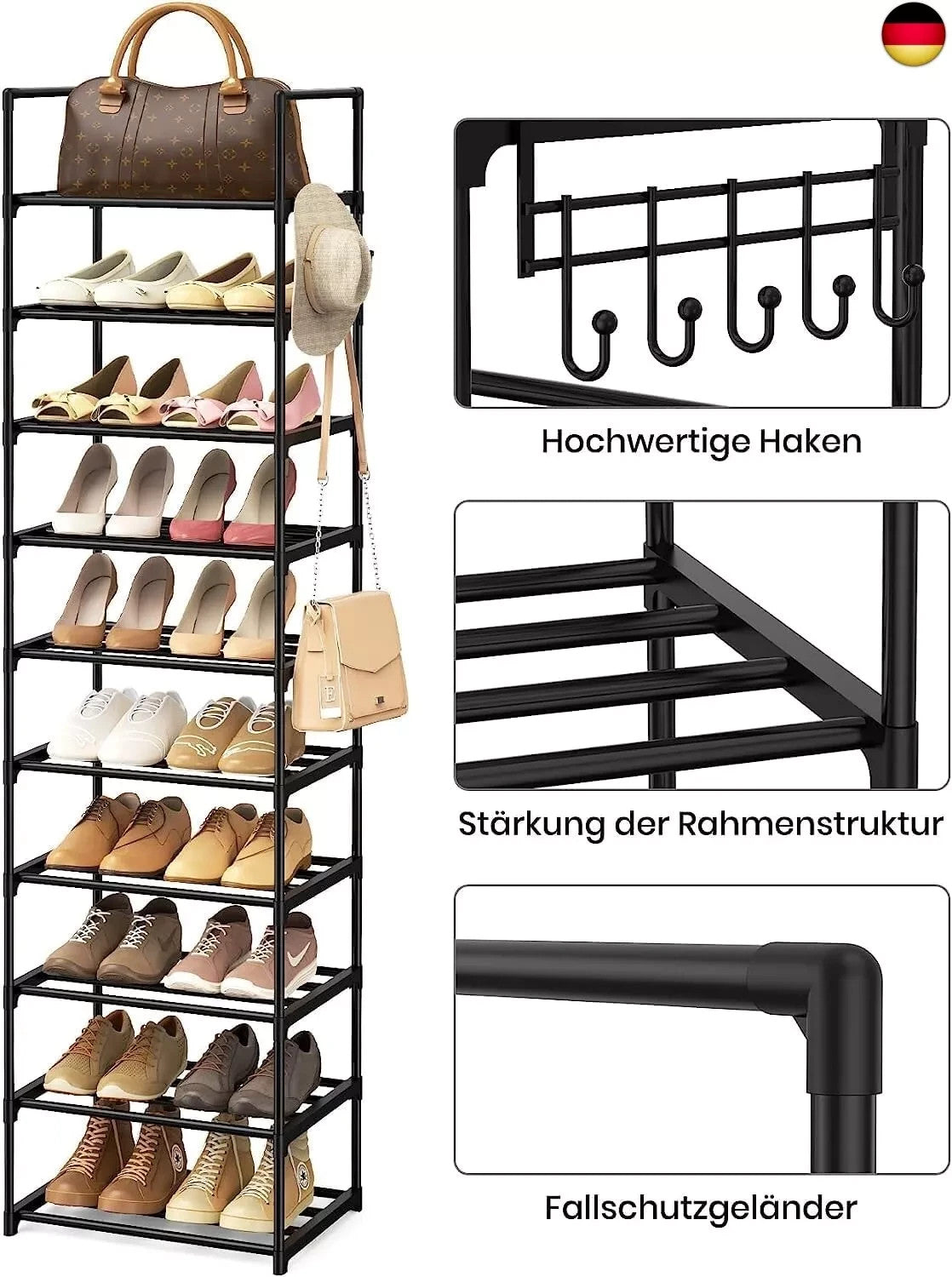 - Einzigartiges Design: Vertikale schmale Schuhschrank kann eine gute Sammlung von Ihren Schuhen, Stiefeln, Büchern oder anderen Accessoires sein. Die Schuhablage mit einem vielseitigen Haken, können Sie Schlüssel, Regenschirme, etc, praktisches Design hängen.