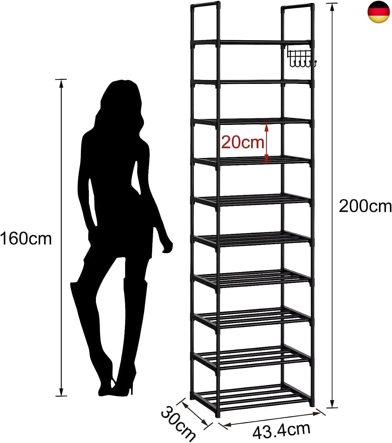 - Platzsparend: Schuhregal metall hat die Maße 30 x 43,4 x 200 cm. Das Vicye Schuhregal mit ablage hat die perfekte Größe für kleinen Raum. Frei montieren, um die Höhe zu ändern, die Höhe einer einzelnen Schicht ist etwa 20 cm.