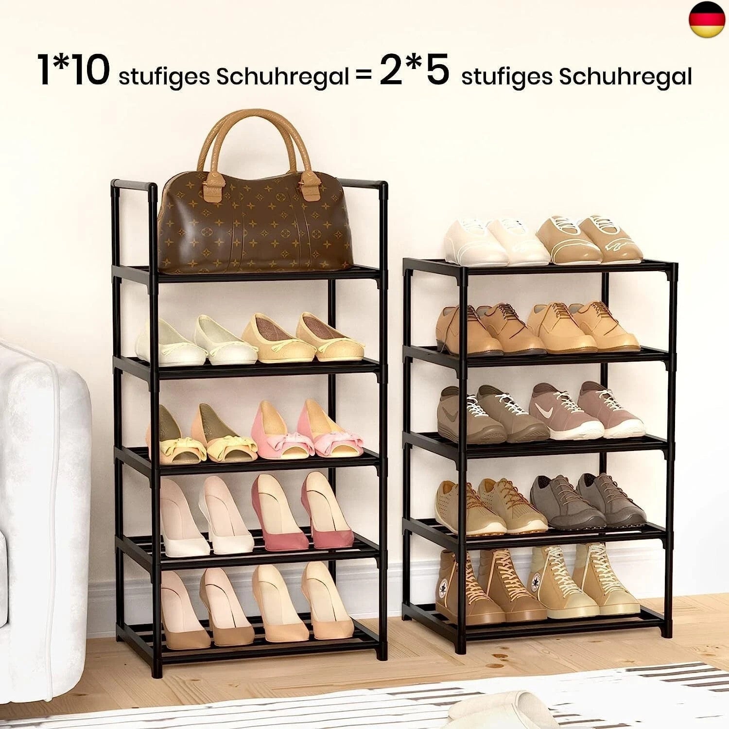 - DIY Montage Schuhständer: Sie können zwei schmale und hohe Schuhregale bestellen und sie zu einem großen Regal zusammenbauen, das die Schuhe aller Familienmitglieder aufnehmen und organisiert halten kann.