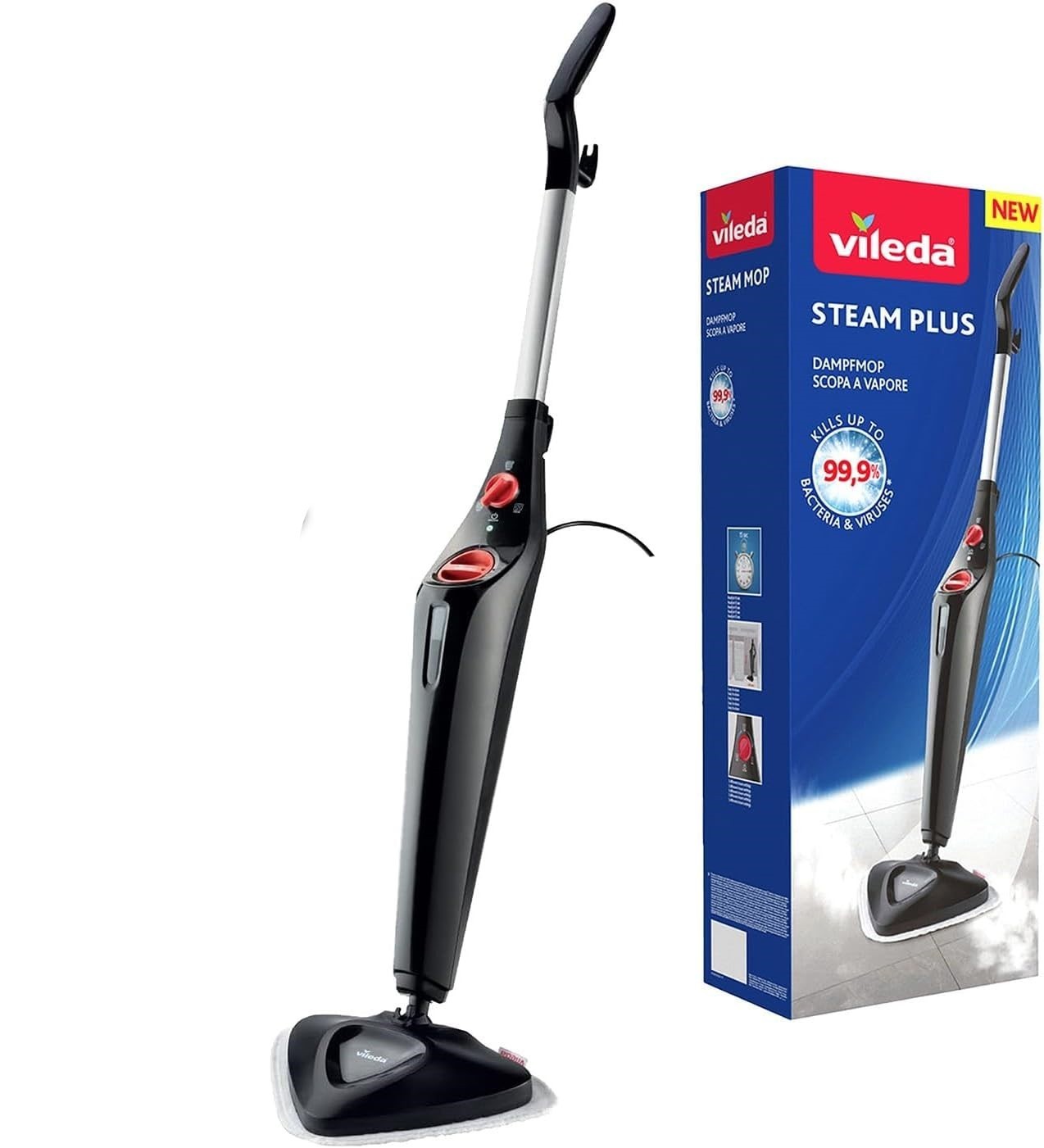 • VILEDA STEAM PLUS DAMPFREINIGER – Leistungsstarker Dampfreiniger mit Mikrofaserpad, 400-ml-Wassertank und 5 m Kabel – ideal für hygienische Bodenreinigung ohne Chemie.