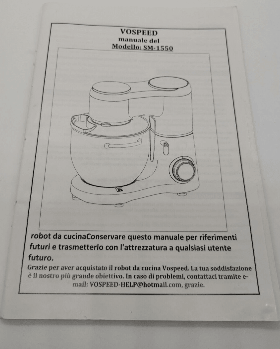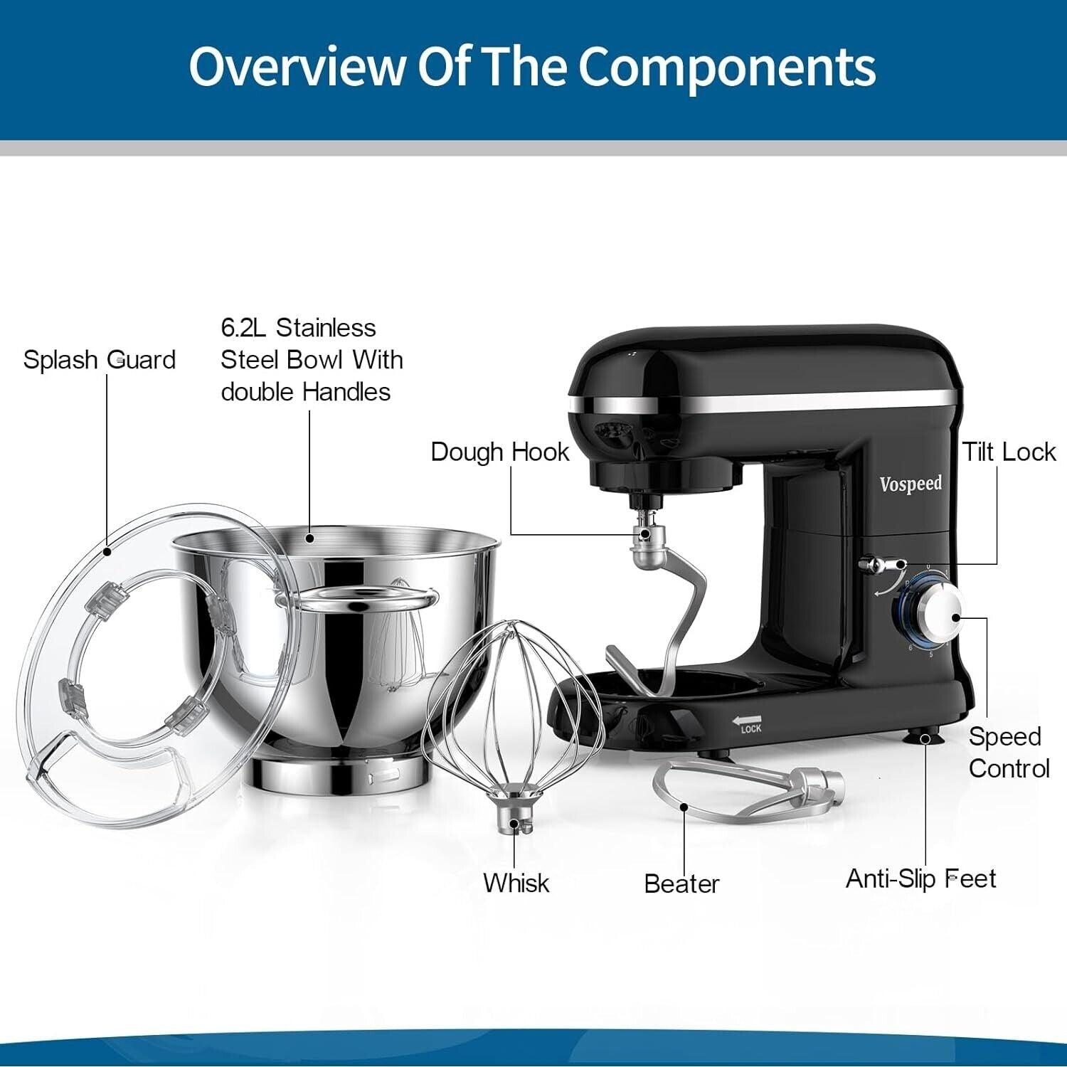 Vospeed Küchenmaschine Knetmaschine Backen, 1500W, 6,2l, 10 Geschwindigkeiten