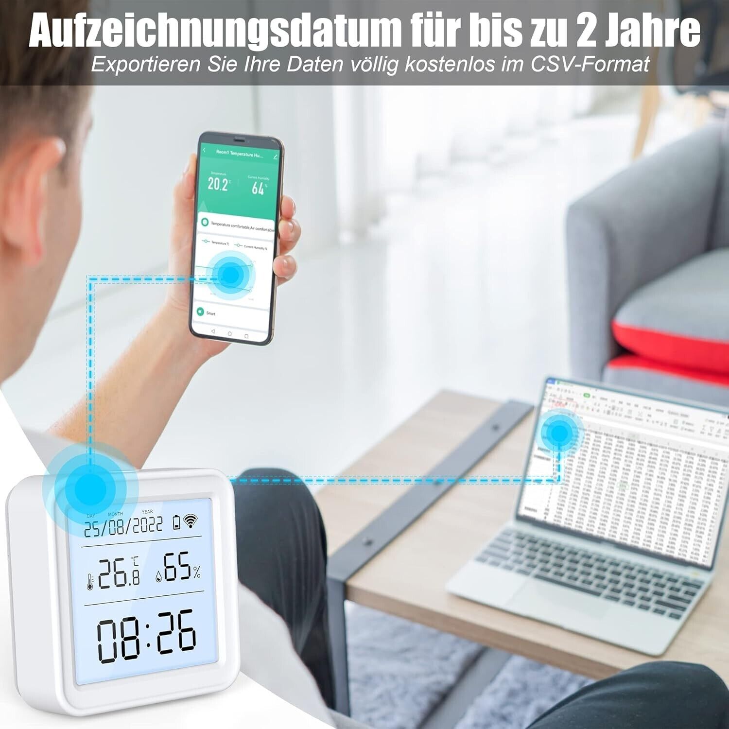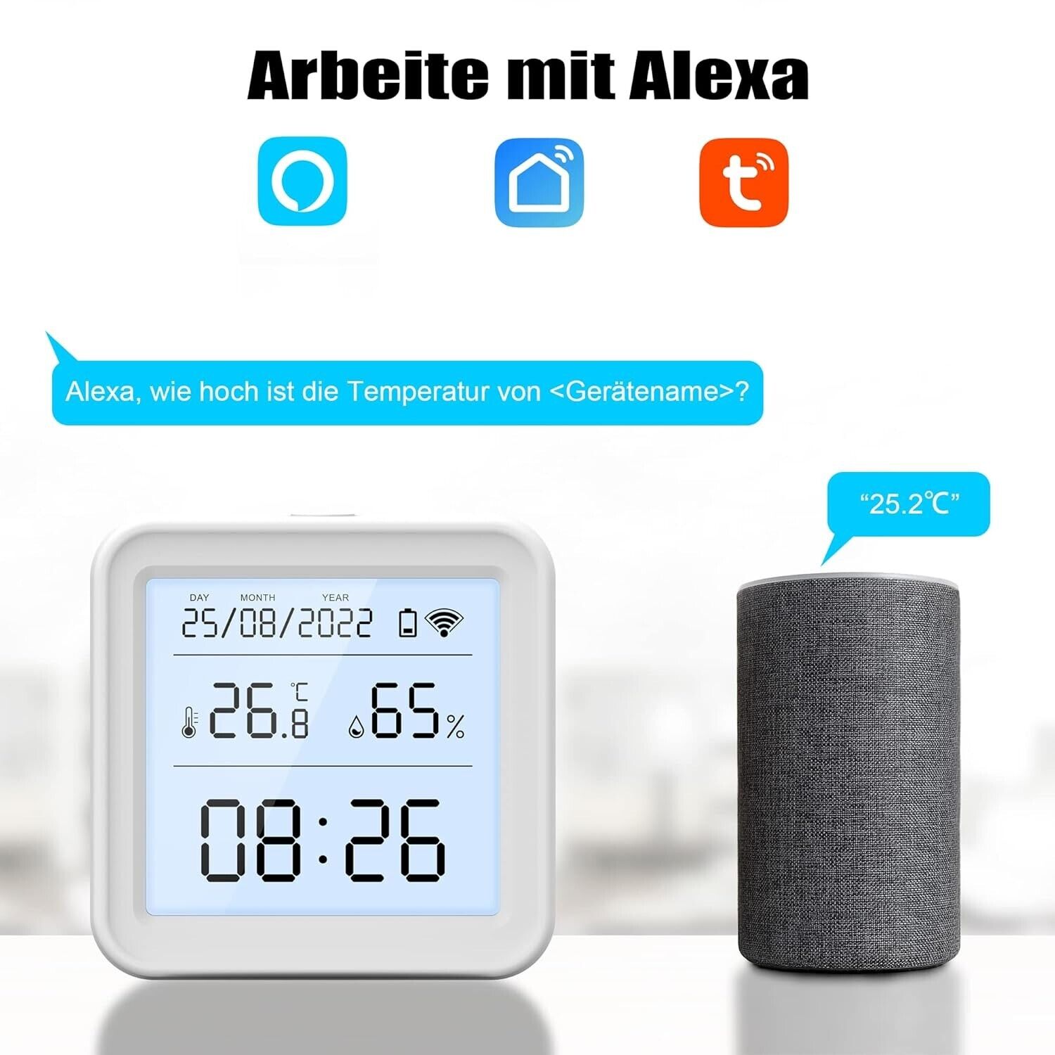 Szenenverknüpfung Der Sensor kann als Temperatur- und Feuchtigkeitsdatenquelle von Tuya Smart, Smart Life, Amazon Alexa, Google Home verwendet werden. Sie können viele automatisierte Prozesse basierend auf der Datenquelle durchführen.
