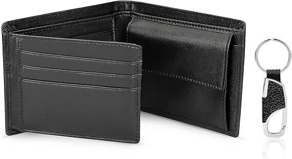 Wilbest Herren Ledergeldbörse aus echtem Leder, Portemonnaie Geldbeutel mit RFID Blocking & Leder Schlüsselhalter, Trifold Slim Echtes Leder Geldbörse,Münzfach Kreditkartensteckplätze & Kartenetuis