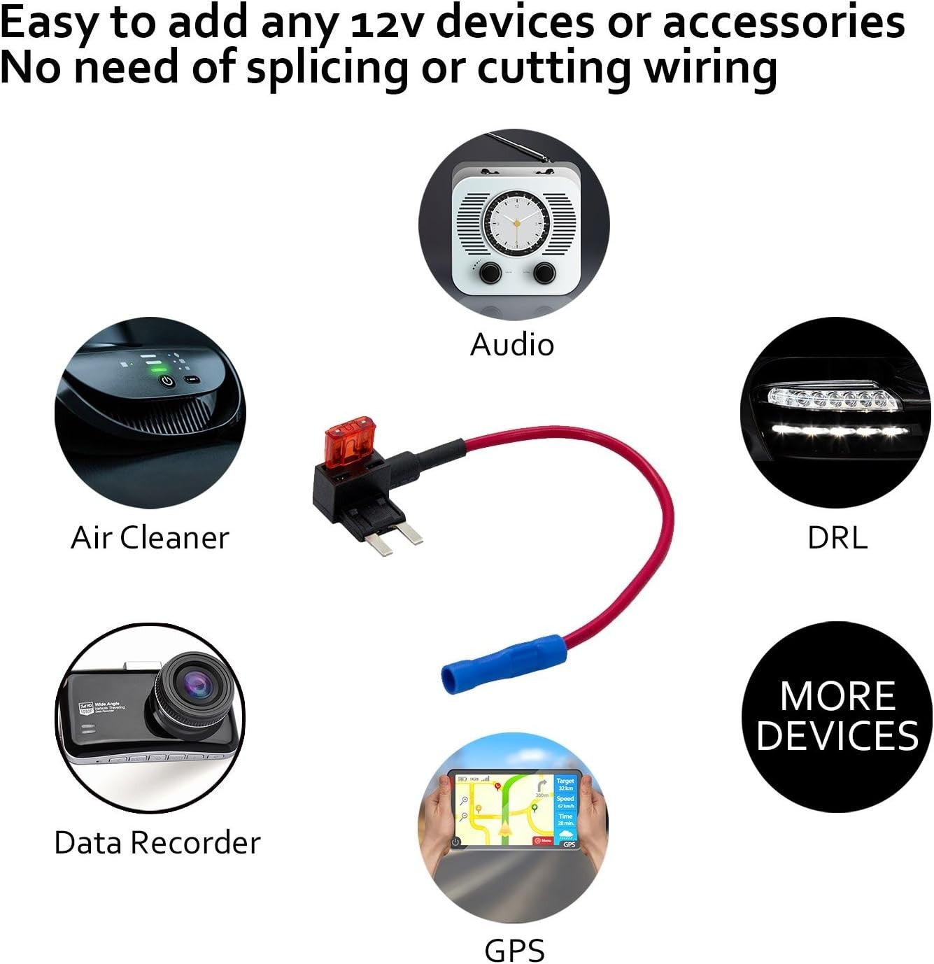 - 【 Add-A-Circuit 】Stellen Sie einen Sicherungshalter zum Schutz des vorhandenen Schaltkreises und einen zweiten Sicherungshalter zum Schutz des neuen Schaltkreises bereit. Perfekte Lösung, um Ihrem Auto eine zusätzliche Schaltung hinzuzufügen, eine großartige Möglichkeit, einfach eine zusätzliche Stromquelle hinzuzufügen, ohne die OEM-Verkabelung des Fahrzeugs zu stören, ohne dass eine Verkabelung erforderlich ist.