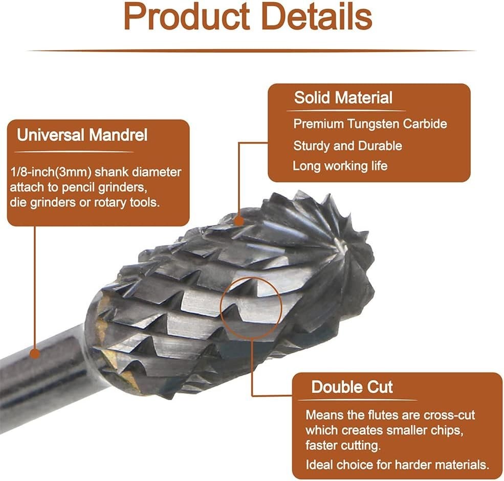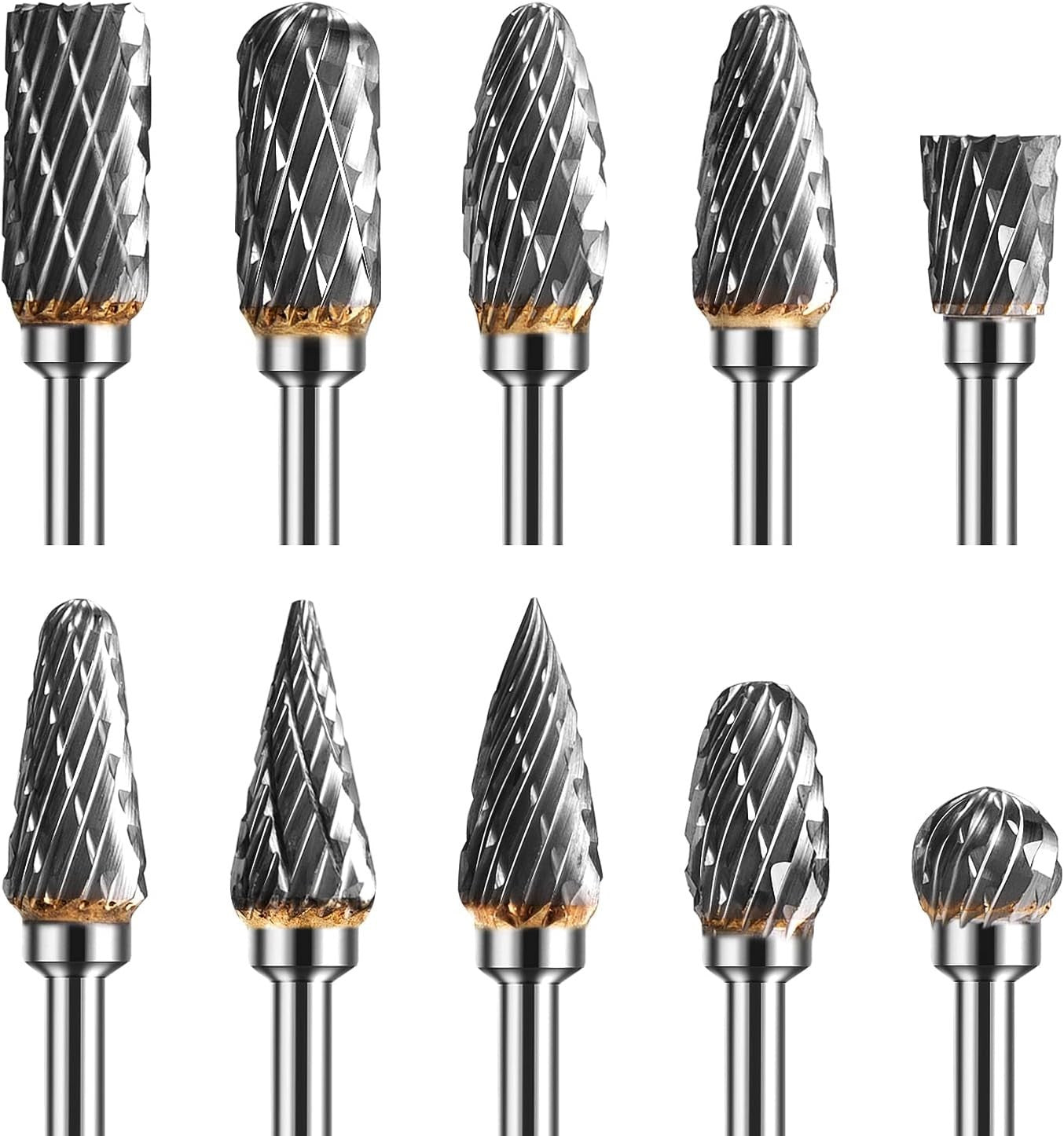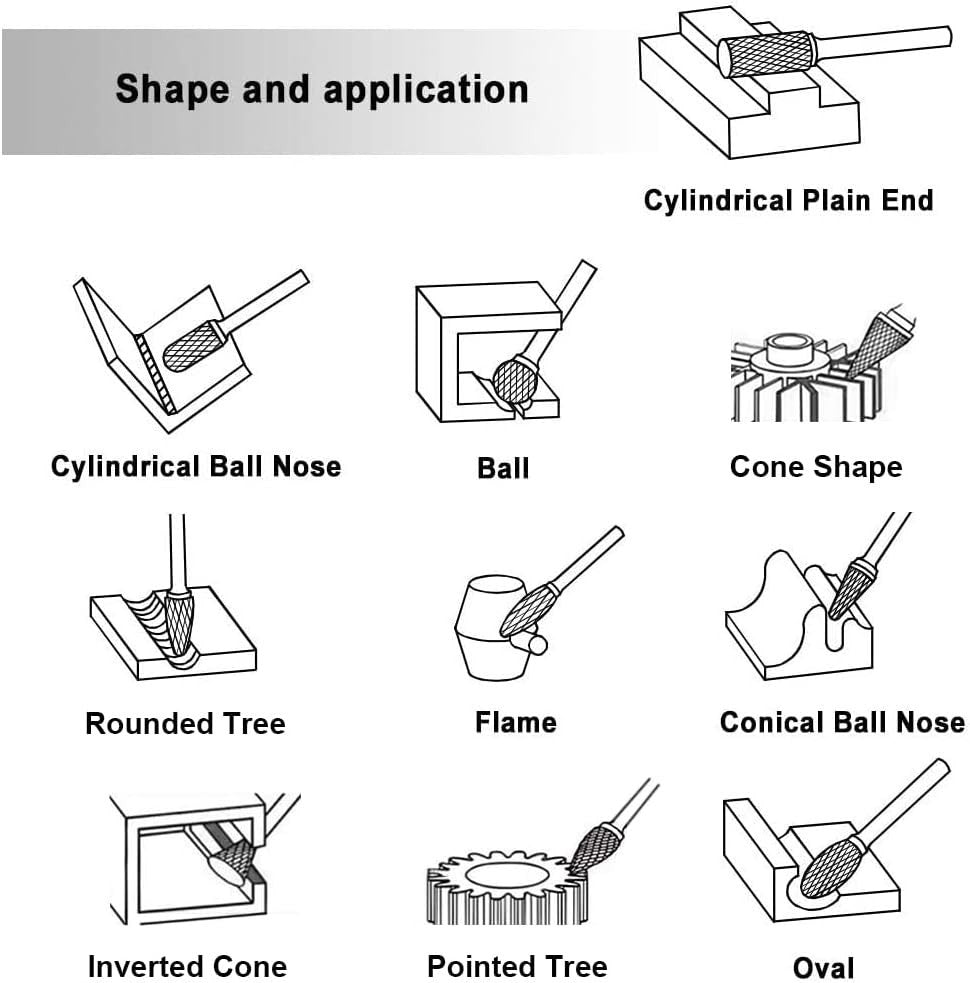 4. Diese Wolframkarbid-Frässtifte mit 1/8-Zoll-Schaftdurchmesser lassen sich an Bleistiftschleifern, Schneideisen oder Drehschleifern (elektrisch oder pneumatisch) befestigen. Gesamtlänge 45-50 mm, Schleifköpfe Durchmesser: 6 mm, Schaftlänge 35 mm