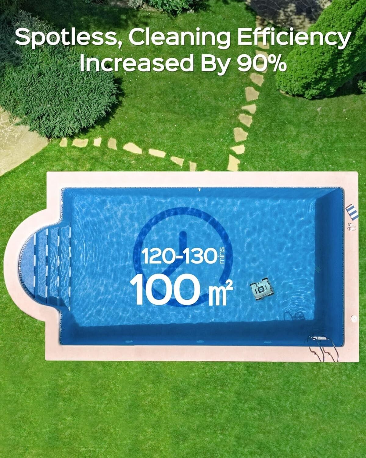 - Kabellos und sicher: Verabschieden Sie sich von verhedderten Schläuchen mit dem innovativen Poolroboter akku. Ausgestattet mit einer gewaltigen Kapazität von 6600 mAh und einem sicheren Lithium-Polymer-Akku mit hoher Dichte, kann dieses Gerät mit einer einzigen Ladung bis zu 130 Minuten lang bis zu 100m² reinigen. Aktivieren Sie ihn einfach mit einem einzigen Klick, und der Osprey 300II wird seine Reinigungsaufgaben automatisch ausführen.