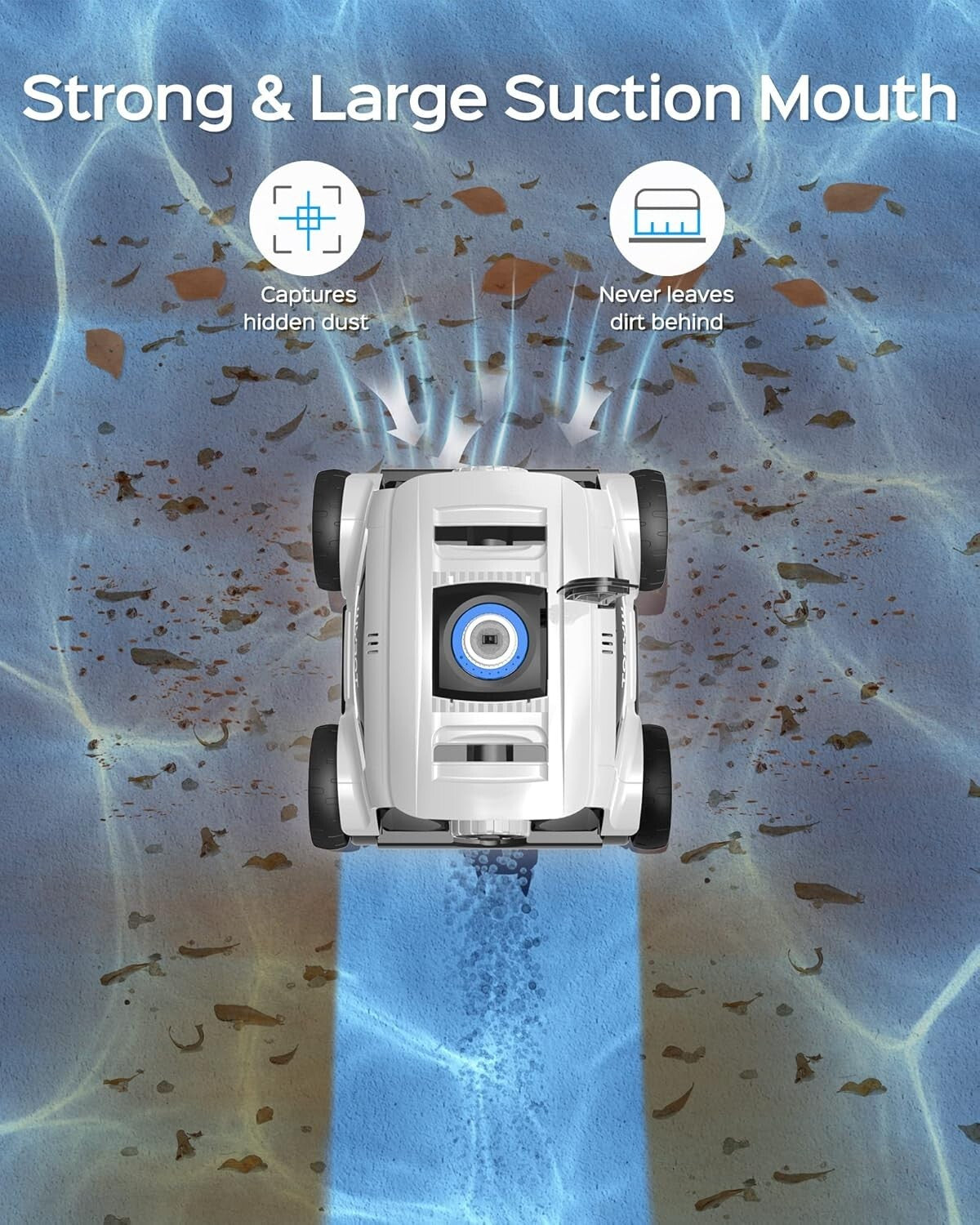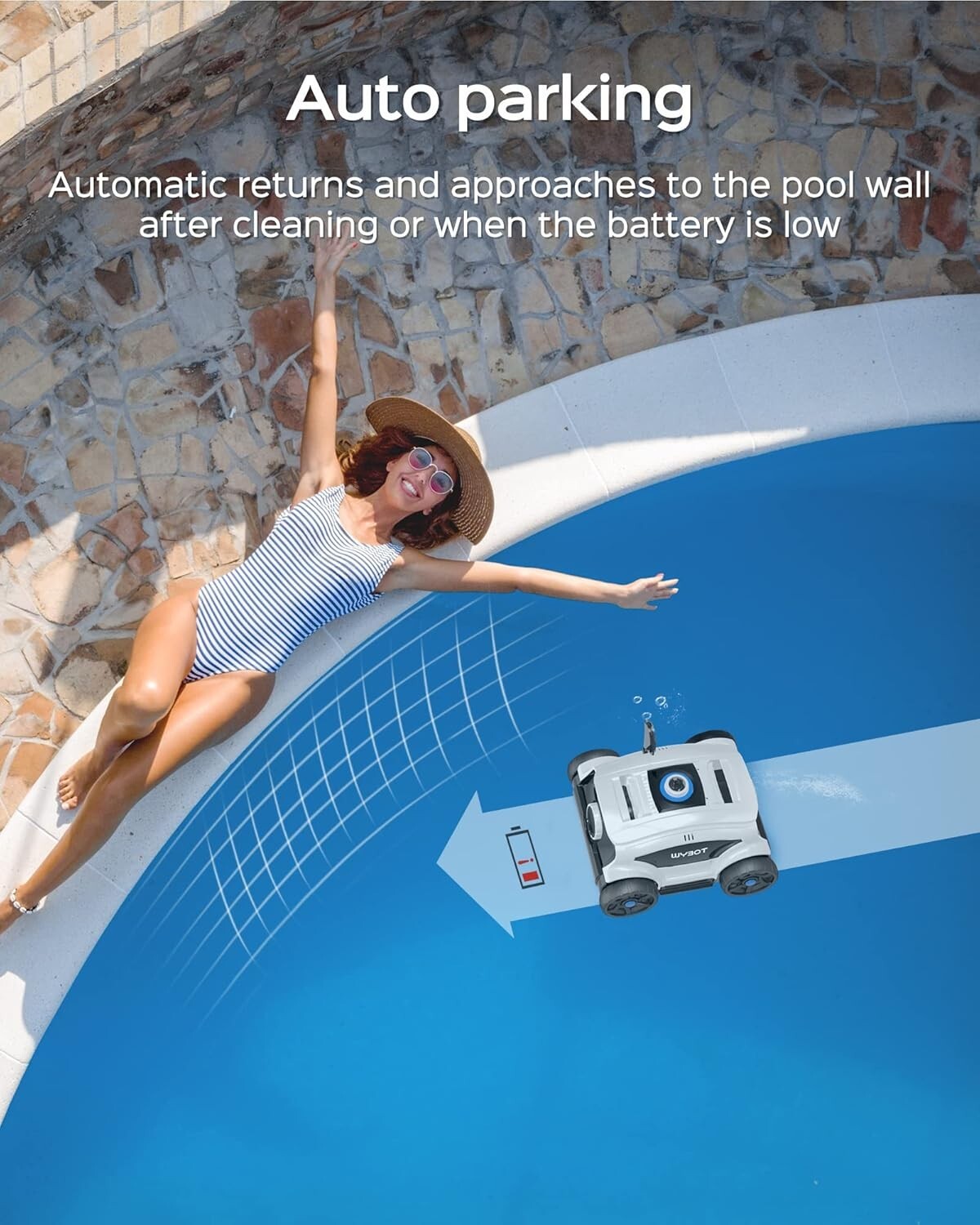 WYBOT Poolroboter für 130 Minuten Betrieb, Poolsauger mit Starke Leistung, Dual-Antriebsmotoren, Schneller Wasserablass, Pool Roboter für Aufstellpool/Außenpool bis zu 100m²