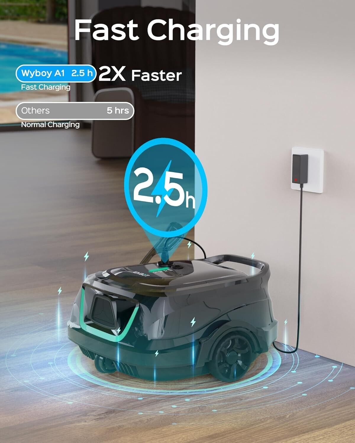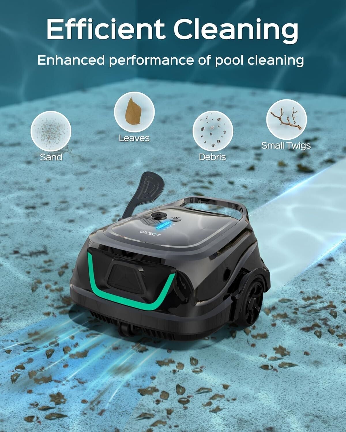 • Bemerkenswerte Leistung und Effizienz: Der kabellose Poolroboter WYBOT wiegt nur 3,5 kg und ist mit einer vergrößerten elliptischen Saugdüse ausgestattet, um größere Schmutzpartikel aufzunehmen. Ausgestattet mit einem leistungsstarken Motor sorgt er für eine effiziente Absaugung, um Staub, Sand, empfindliche Blätter oder anderen hartnäckigen Schmutz zu entfernen.