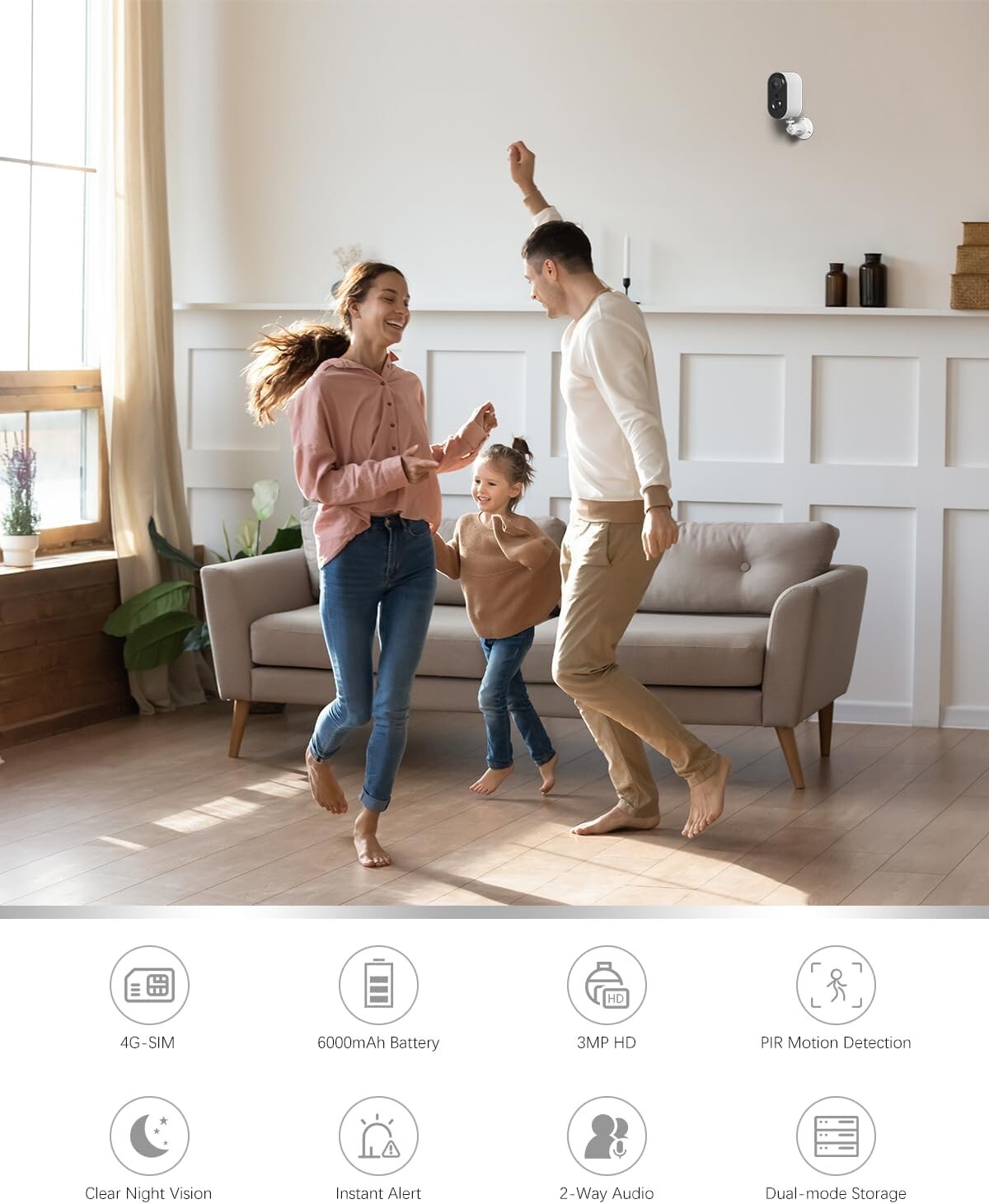 - 【4G MOBILFUNKVERBINDUNG & KEIN WIFI ERFORDERLICH】Diese Innen Überwachungskamera unterstützt 3G/4G-Mobilfunk, keine Unterstützung WiFi, es ist nicht nur geeignet für Innenbereiche wie Wohnzimmer, Schlafzimmer und Büros, sondern auch Außenbereiche wie temporäre Parkplätze, Camping, Picknick. Wir empfehlen Ihnen, die mitgelieferte SIM-Karte zu verwenden. Diese SIM-Karte wurde viele Male getestet, die stärkere Kompatibilität hat.