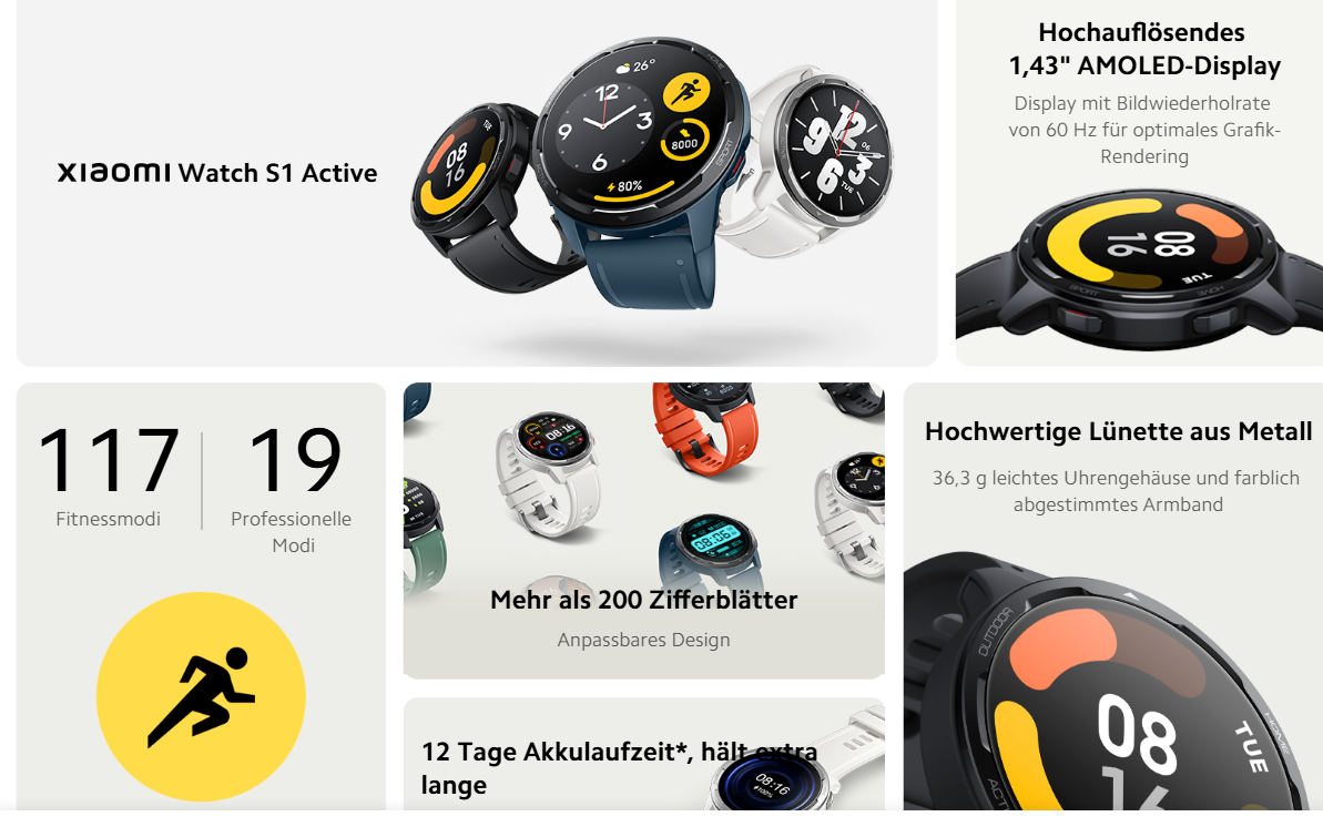 Xiaomi Watch S1 Active Smartwatch (1,43" AMOLED HD; 117 Trainingsmodi; Überwachu